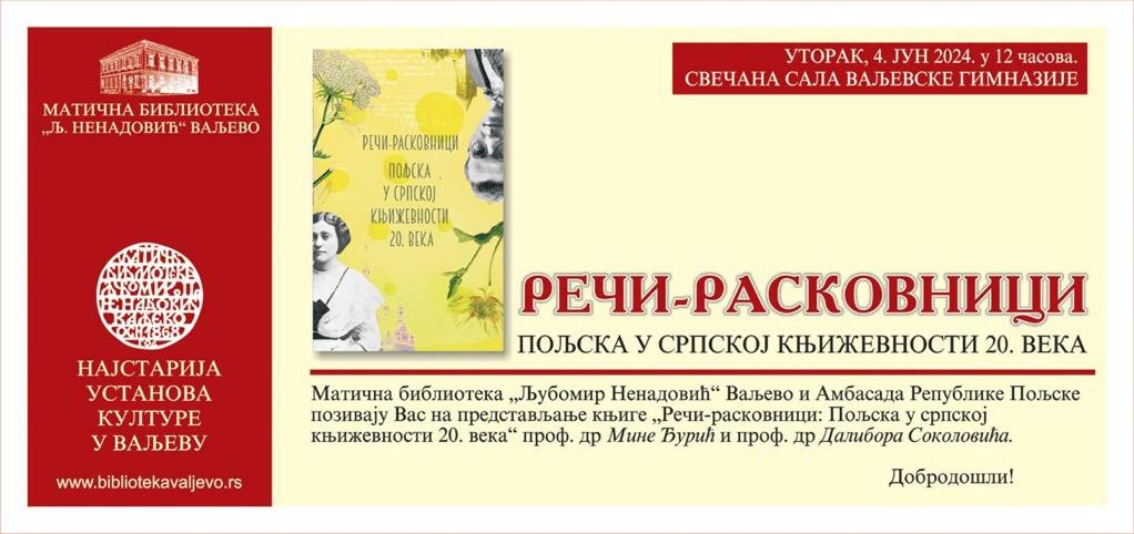W dniu 10 czerwca br. w Valjevie odbyła się promocja publikacji o polsko-serbskich związkach literackich (Reči - raskovnici. Poljska u srpskoj književnosti 20. veka), która ukazała się w grudniu 2023 r. z inicjatywy placówki.
