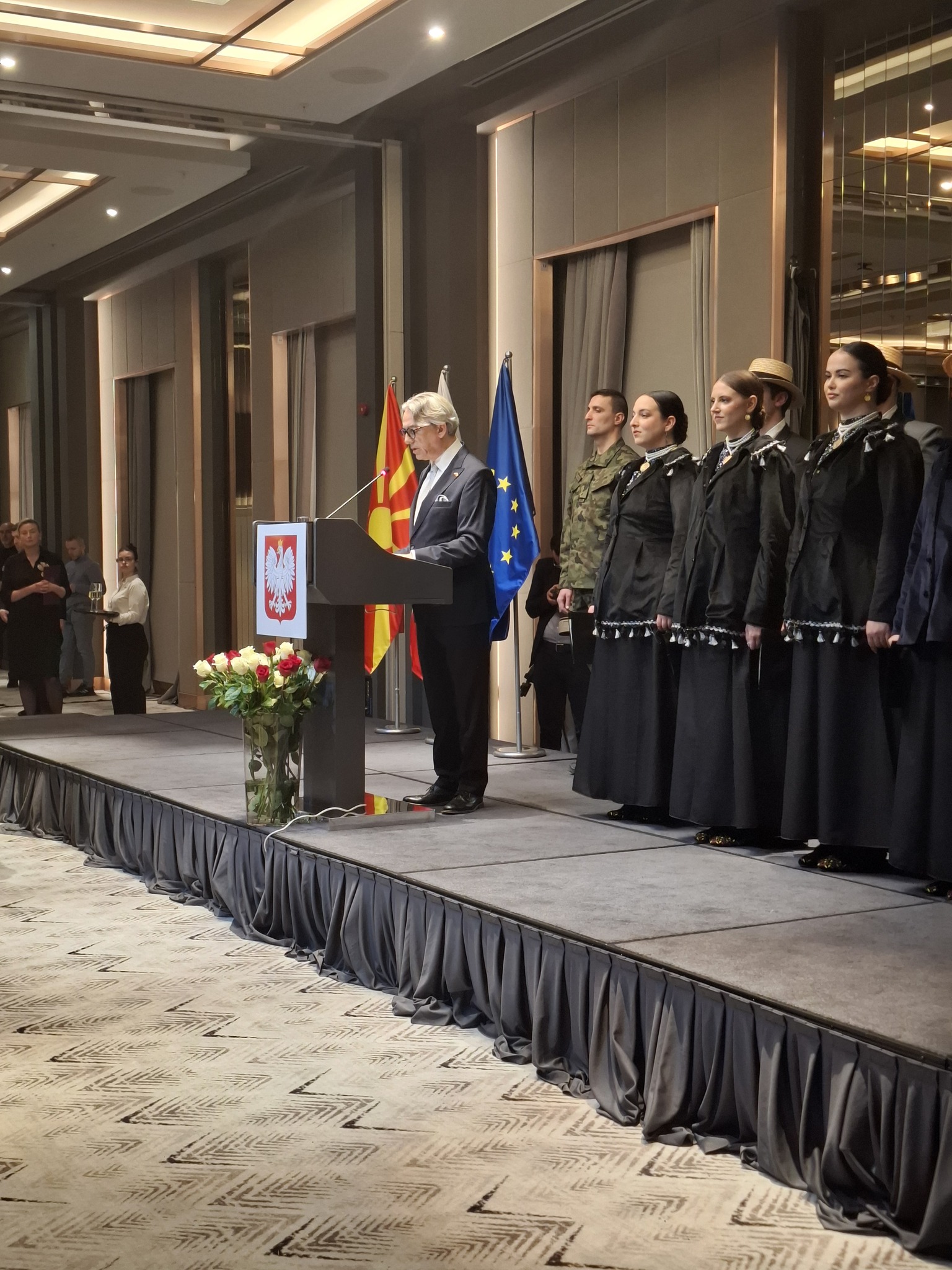 Во својот говор, ополномоштениот министер Мариуш Бримора се осврна на нашата борба за независност и нè потсети дека таа не е дадена еднаш засекогаш. Затоа, особено во услови на многу геополитички предизвици, меѓународната солидарност и соработка се многу важни, а тие се присутни во изобилие во односите меѓу Полска и Северна Македонија.