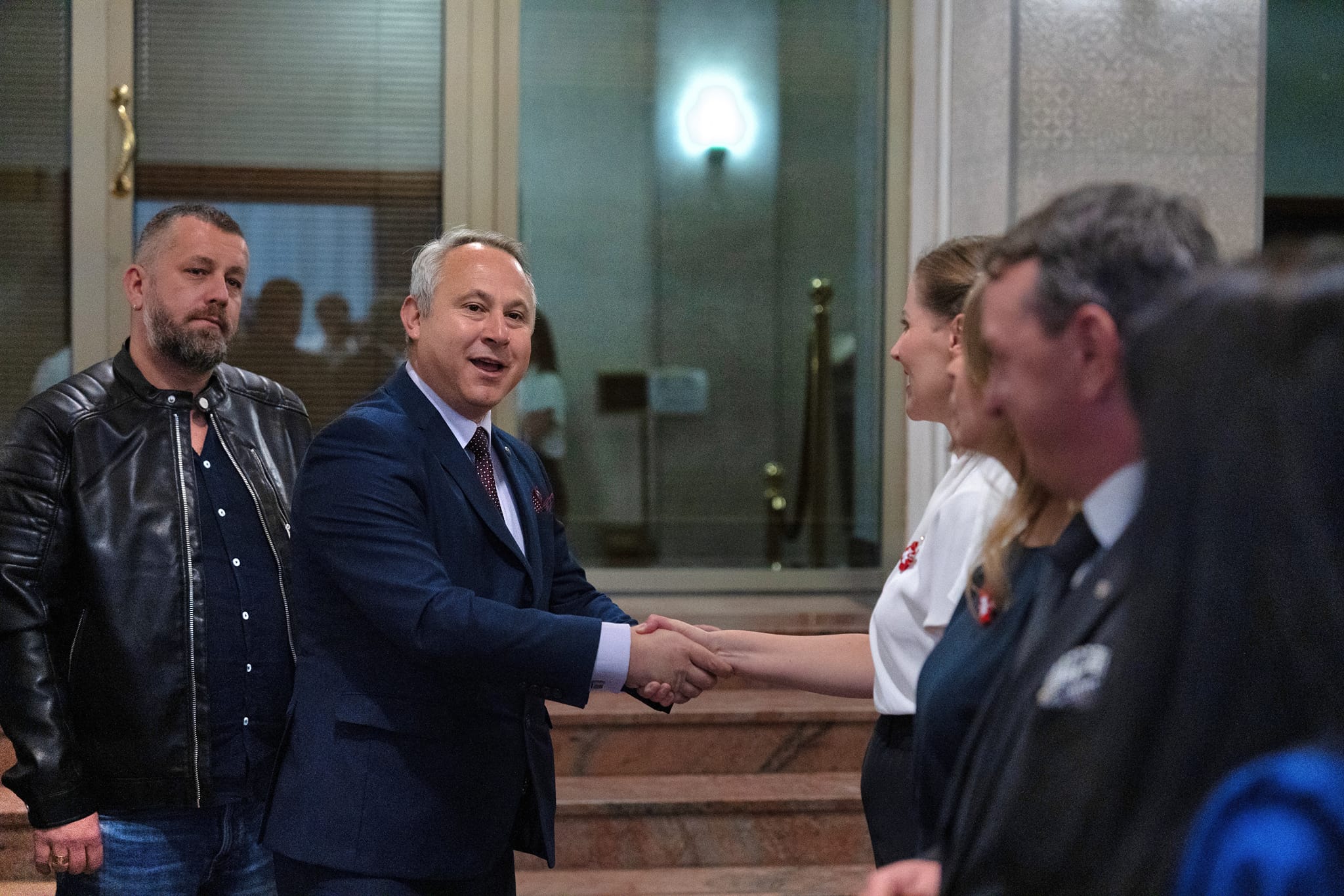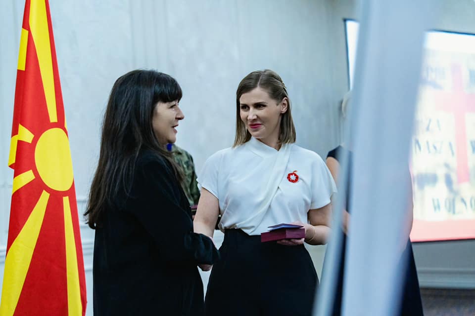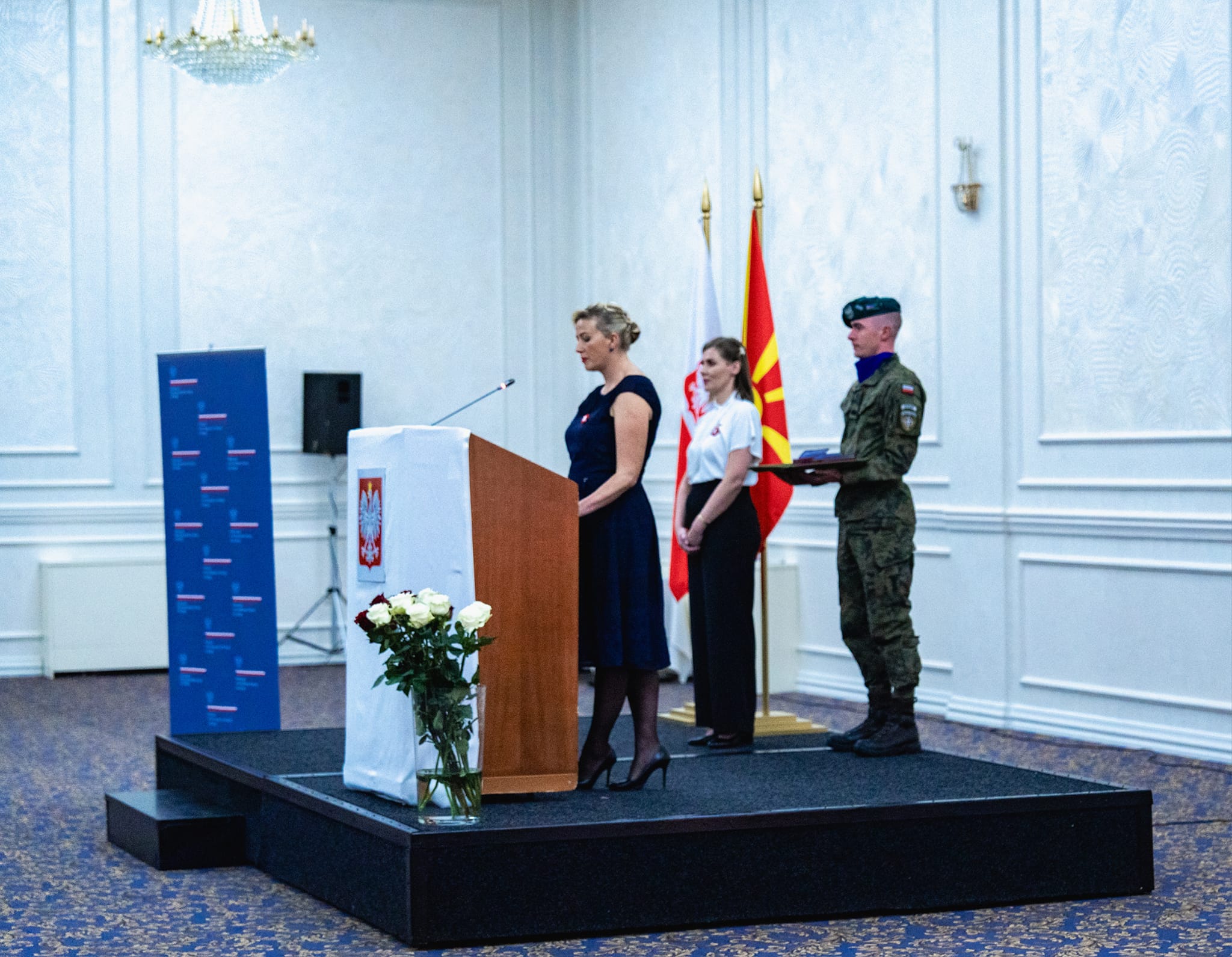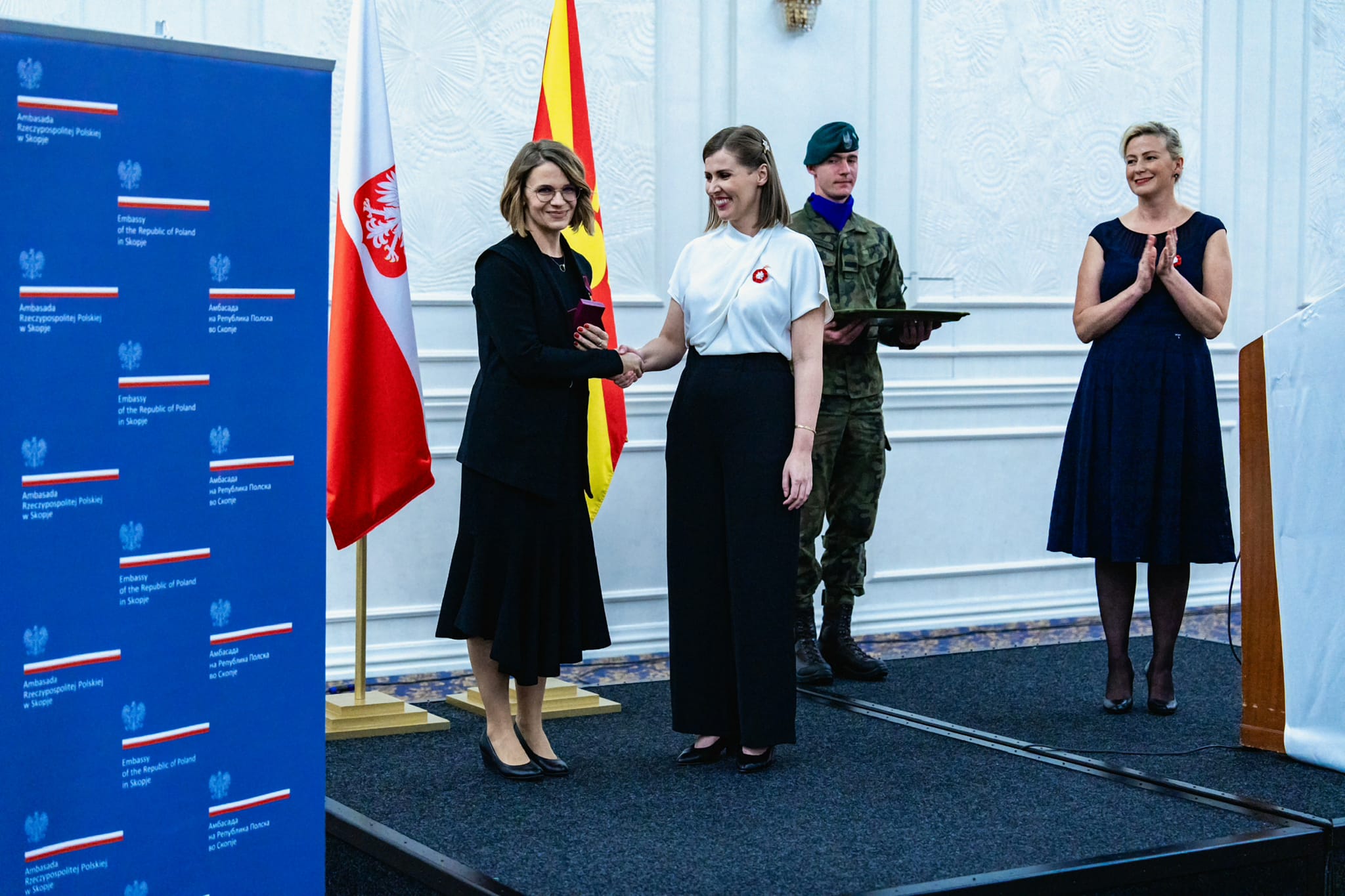 За време на приемот беа доделени одликувања од Претседателот на Република Полска: Крст на витешкиот ред за заслуги на Република Полска за г-ѓа Лидија Танушевска и Златни крстови за заслуги за г. Филип Димевски и г-ѓа Наталија Лукoмска. Сите одликувања беа доделени за промовирање на полската литература. Воената поддршка за оваа пригода беше обезбедена од полскиот контингент во КФОР.