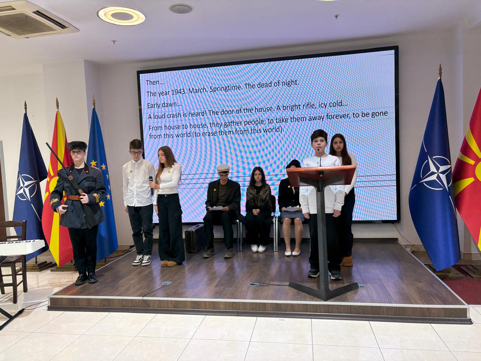 За време на настанот, ученици од Штип изведоа потресна кратка уметничка програма со наслов „Писмо од Треблинка“, одавајќи им почит на жртвите на Холокаустот и потсетувајќи нè значењето на историското сеќавање.
