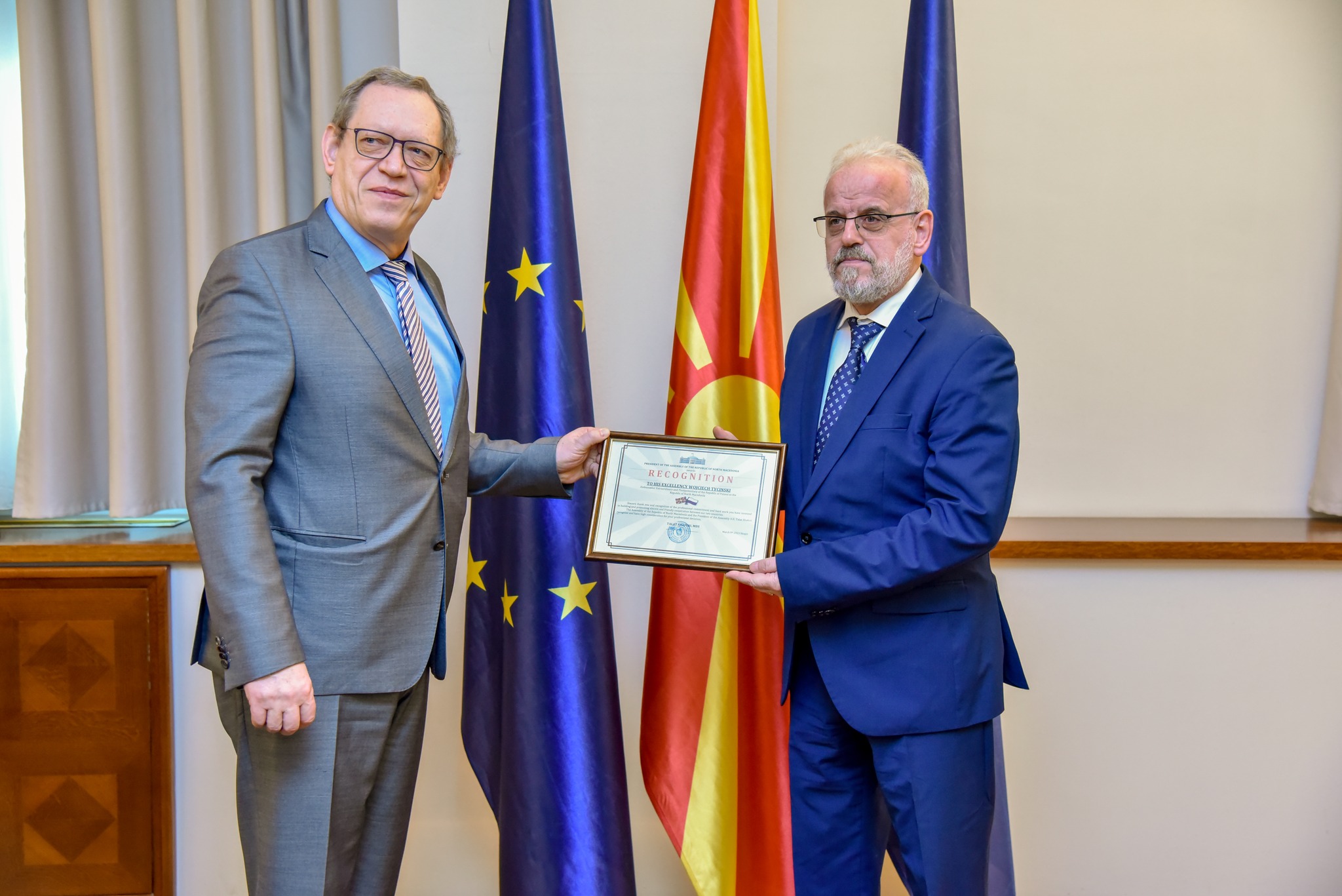На 9 март амбасадорот Војциех Тицињски, кој наскоро ќе ја заврши својата мисија во Скопје, оствари проштална средба со претседателот на Собранието, Талат Џафери.