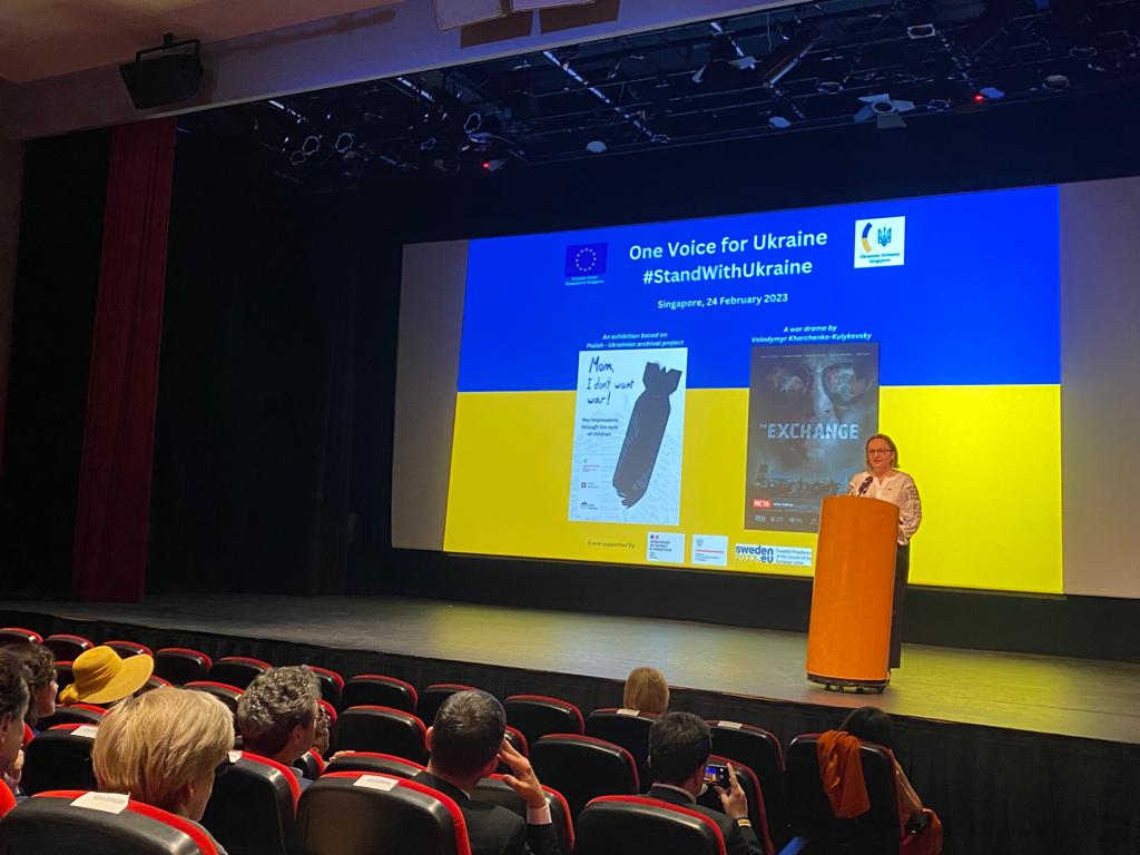 The official speeches by the EU Ambassador Iwona Piórko-Bermig and the Ambassador of Ukraine Kateryna Zelenko were followed by a large screen Polish-Ukrainian exhibition "Mom, I don't want war".