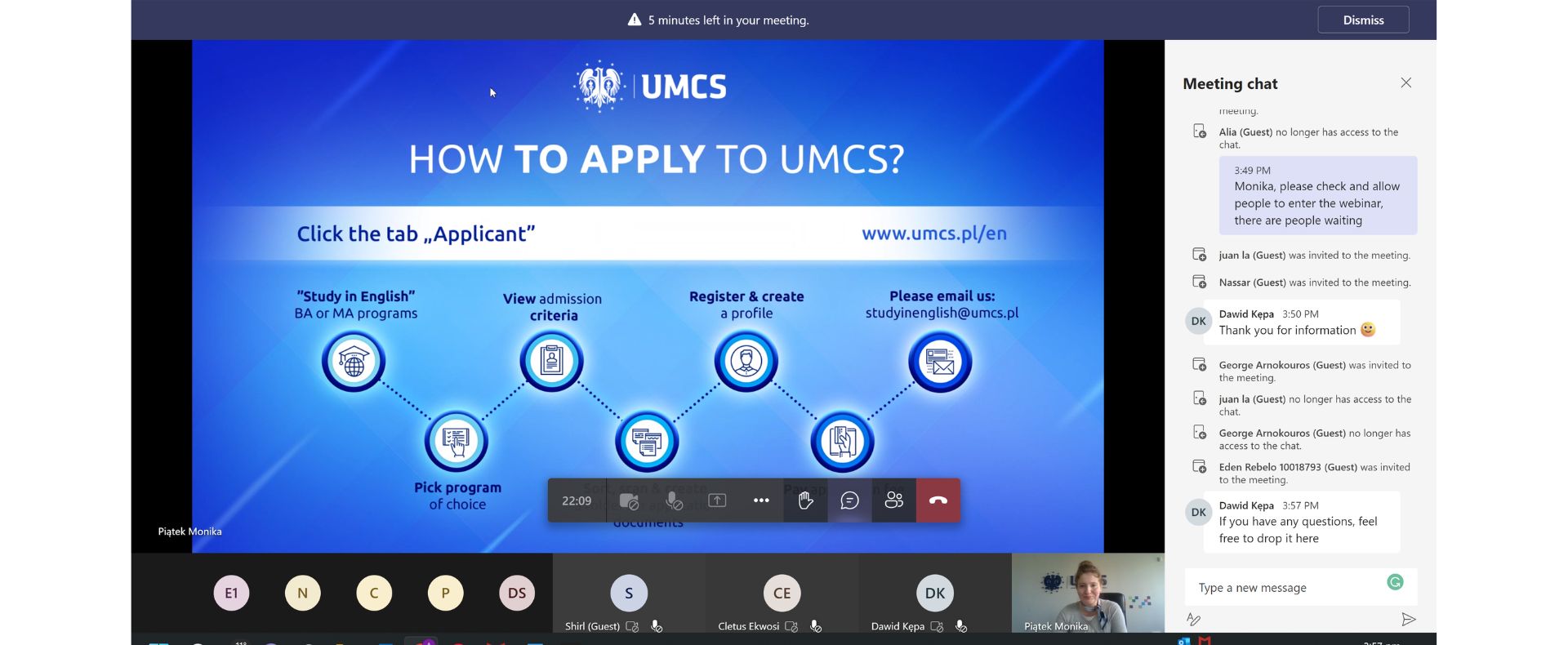 The universities themselves organized three other three webinars: Wrocław University of Science and Technology, Gdańsk University of Technology and Maria Skłodowska-Curie University focused on presenting their educational offer and direct contact with candidates for studies.
