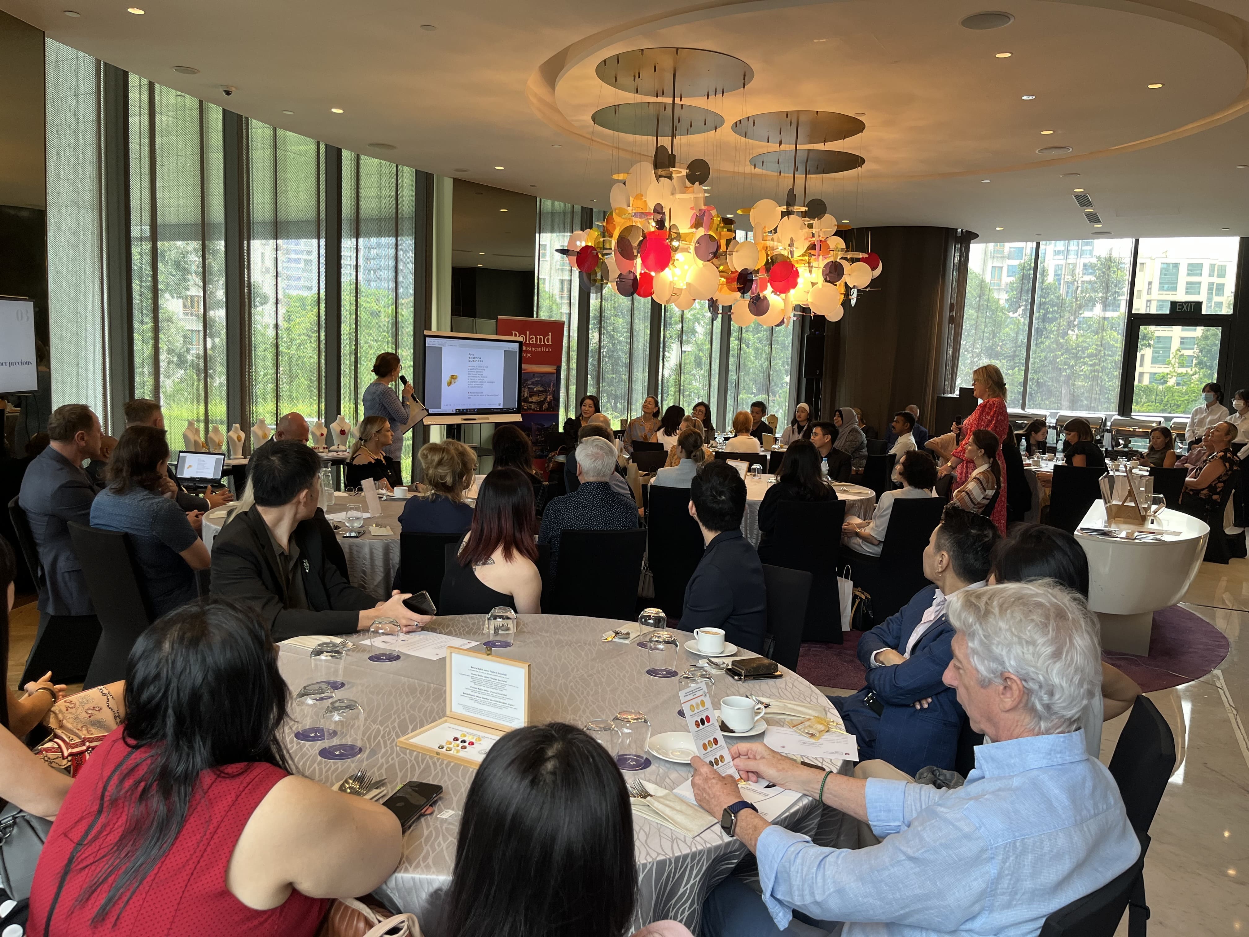 An exclusive press and networking event aimed at introducing and promoting Polish amber jewellery among the local audience and the fashion business was inaugurated by Ambassador Magdalena Bogdziewicz on 26 September 2022, on the eve of Asia's largest jewellery and gemstones fair "Jewellery & Gem World Singapore".