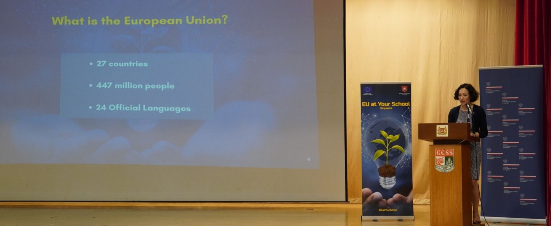 Z perspektywy Polski, ambasador zaprezentowała korzyści wynikające dla kraju i obywateli z członkostwa w UE oraz polski wkład w budowę wspólnoty opartej na wartościach, eksponując zarazem dynamikę rozwoju gospodarczego i rolę regionalnego lidera w Europie Środkowo-Wschodniej. W ramach interaktywnego dialogu z młodzieżą przedmiotem dyskusji były relacje polsko-singapurskie, w tym rosnąca współpraca gospodarcza, której odbiciem jest m.in. rozpoznawalność polskich produktów w lokalnych sklepach, polska oferta turystyczna i edukacyjna dla młodych osób, jak również charakterystyka pracy w dyplomacji.