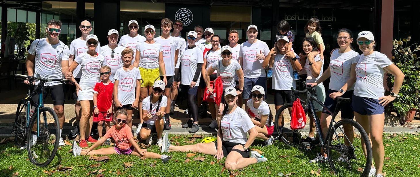 Miłośnicy aktywnego wypoczynku wzięli udział w Rodzinnym Rajdzie Rowerowym (12.05), który placówka przygotowała we współpracy z Polish Cycling Club, firmą Best of Poland SG oraz lokalnym biurem ZBH PAiH. Przy pięknej, słonecznej pogodzie, uczestnicy pokonali 11 km trasę biegnącą z centrum miasta spod tablicy pamiątkowej poświęconej Józefowi Conradowi - Korzeniowskiemu wzdłuż Singapore River, mijając jedne z większych atrakcji turystycznych miasta, i dalej ścieżkami malowniczego East Coast Park. Rajd zakończył się wspólną kawą i śniadaniem. Najmłodsi uczestnicy na mecie otrzymali specjalnie na tą okazję przygotowane przez ZBH PAIH worki sportowe z polskimi słodyczami oraz przekazanymi przez placówkę komiksami "Romek, Tomek i Atomek" i grami planszowymi "Nie-mapa". Rodzinny Rajd Rowerowy był nie tylko okazją do aktywnego spędzenia czasu, ale także wspaniałą okazją do integracji lokalnej Polonii oraz budowania pozytywnych relacji z singapurskimi przyjaciółmi. Zasponsorowane przez firmę 4F koszulki z logo PolandSHIOK oraz czapki były dodatkową atrakcją dla uczestników rajdu, przyczyniając się do podkreślenia widoczności całego wydarzenia.