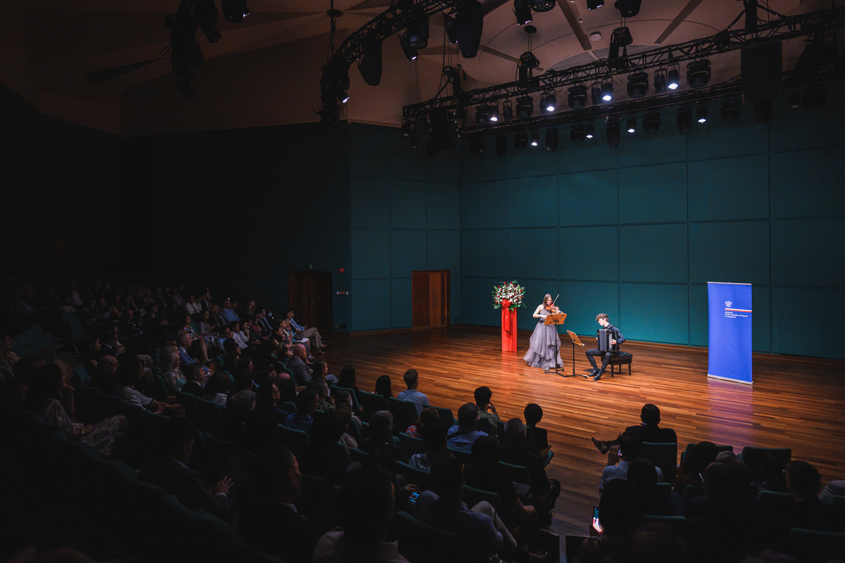 Pełna sale koncertowa pomieściła około 250 osób - przedstawicieli świata dyplomacji, singapurskiego rządu, instytucji kulturalnych, akademickich i badawczych, świata biznesu, artystów, a także lokalnej Polonii.