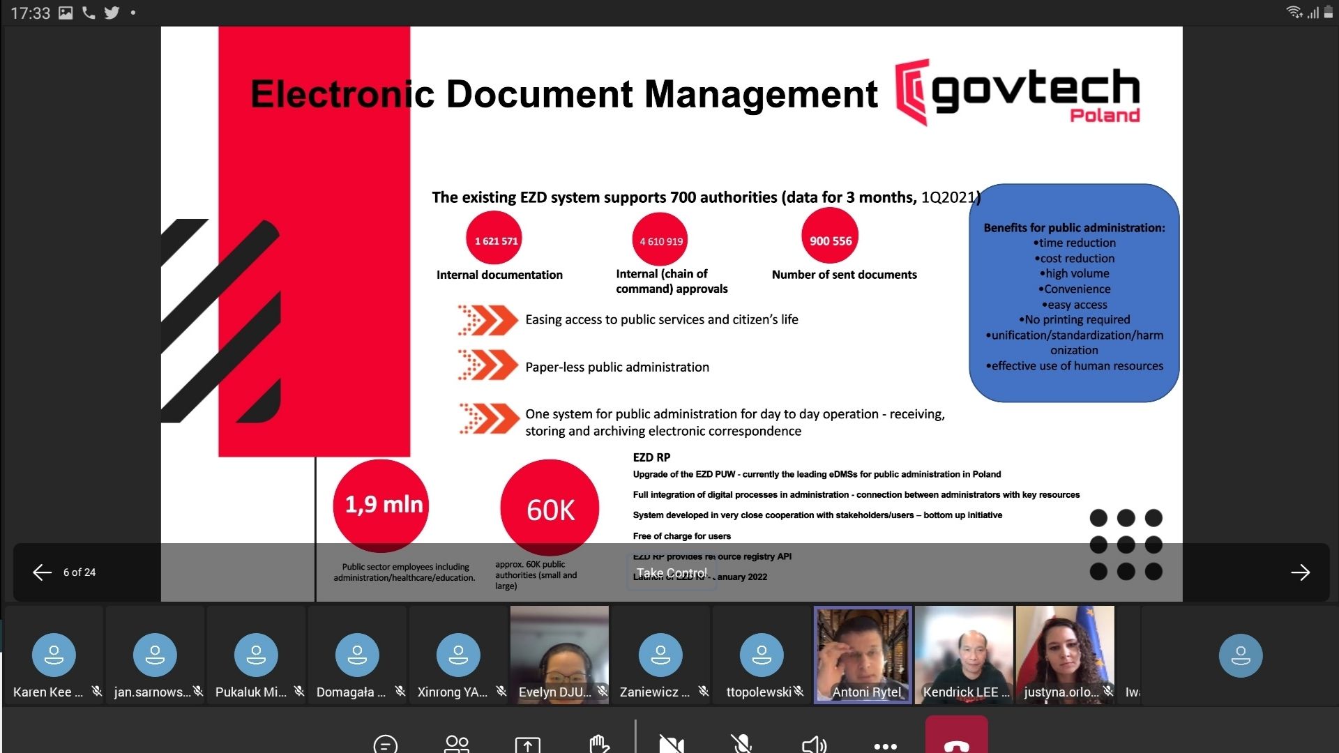 Dnia 14 lipca odbyły się pierwsze polsko-singapurskie konsultacje ws. cyfryzacji. W rozmowach pomiędzy Agencją Rządową ds. Technologii Singapuru, a zespołem programu GovTech Poland udział wzięli min. Jan Sarnowski, Podsekretarz Stanu w Ministerstwie Finansów i współtwórca Programu GovTech Poland, min. Justyna Orłowska - Pełnomocnik Prezesa Rady Ministrów RP ds. GovTech, Dyrektor Centrum GovTech, a po stronie singapurskiej Chan Cheow Hoe, Government Chief Digital Technology Officer, Smart Nation & Digital Government Office.