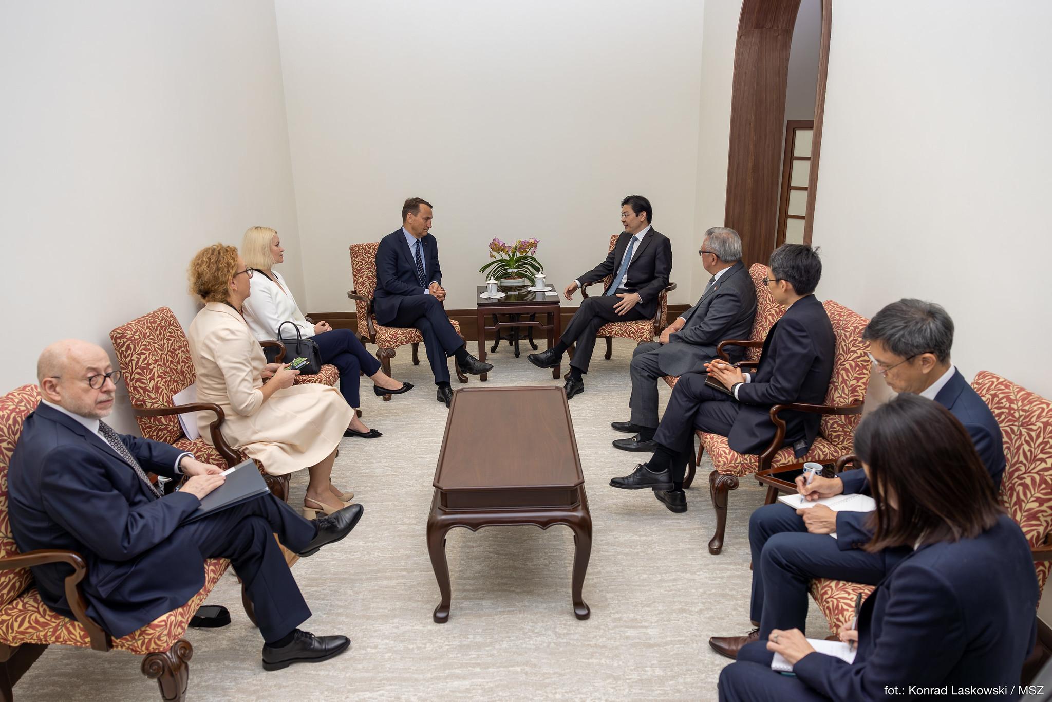 Podczas swojej pierwszej oficjalnej wizyty w Republice Singapuru, minister Sikorski spotkał się z najważniejszymi przedstawicielami władz singapurskich: premierem Lawrencem Wongiem, ministrem spraw zagranicznych Vivianem Balakrishnanem oraz ministrem ds. bezpieczeństwa narodowego Teo Chee Heanem.