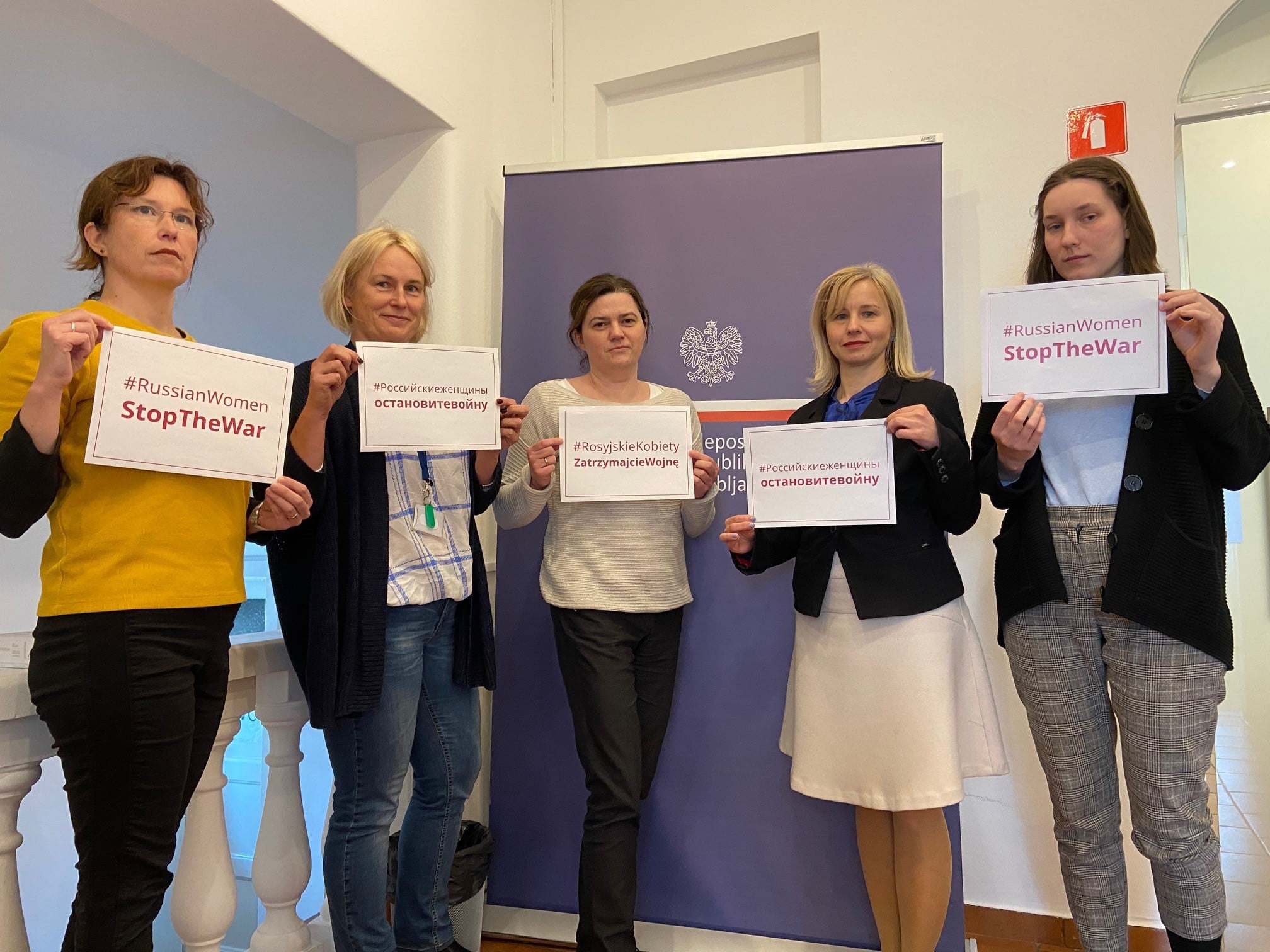 Poljsko veleposlaništvo se je zelo dejavno vključilo v akcijo prve dame Republike Poljske na družbenih omrežjih. Soproga veleposlanika Republike Poljske Joann Olendzka je posnela kratek film s sporočilom, namenjenim ruskim ženskam. Objave prvih dam iz Slovenije so bile objavljene na uradnih računih predsednika Republike Slovenije Boruta Pahorja ter predsednika Vlade Republike Slovenije Janeza Janše, Vlade Republike Slovenije, na računu soproge predsednika Vlade Republike Slovenije Urška Bačovnik Janša ter bile posredovane naprej.