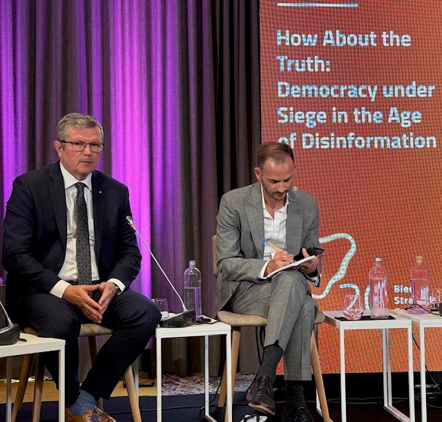 Državni sekretar Bosacki je na forumu, ki je potekal 1. in 2. septembra 2025 na Bledu, sodeloval v panelni razpravi »How About the Truth: Democracy under Siege in the Age of Disinformation«, posvečeni izzivom, ki jih predstavljajo dezinformacije, ter njihovemu vplivu na demokracijo in mednarodno varnost.