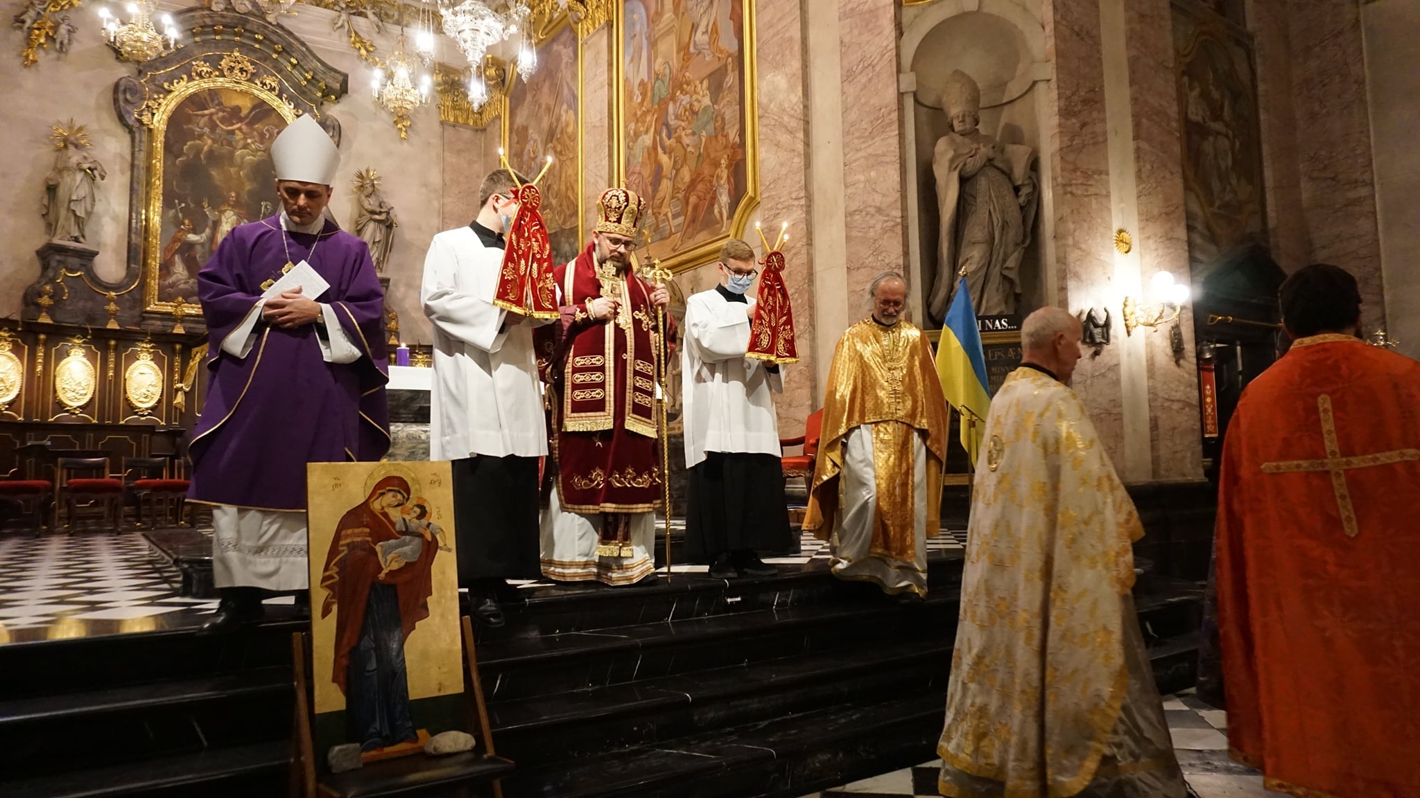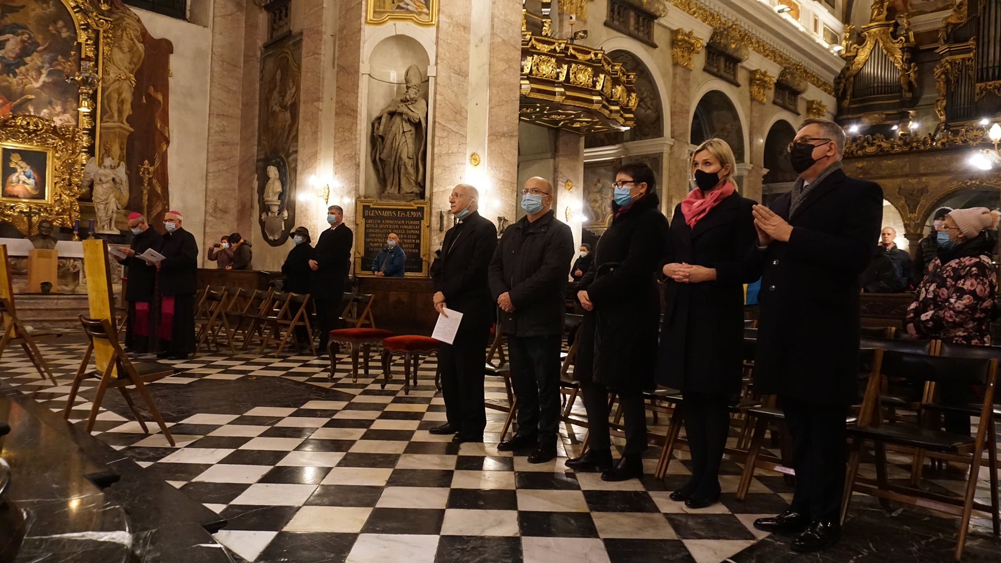 Ekumenske arhijerejske liturgije, ki jo je daroval hrvaški grkokatoliški škof vladika Milan Stipić v navzočnosti ljubljanskega nadškofa in metropolita msgr. Stanislava Zoreta, apostolskega nuncija v Sloveniji nadškofa msgr. Jeana-Marie Speicha, ljubljanskega pomožnega škofa Antona Jamnika in novomeškega škofa msgr. Andreja Sajeta, so se udeležili tudi veleposlanik Ukrajine v Sloveniji Mihajlo Brodovič s soprogo Olgo, veleposlanik Republike Poljske Krzysztof Olendzki s soprogo Joanno, predstavniki diplomatskega korpusa in državnih oblasti v Sloveniji ter številni verniki in prijatelji Ukrajine.