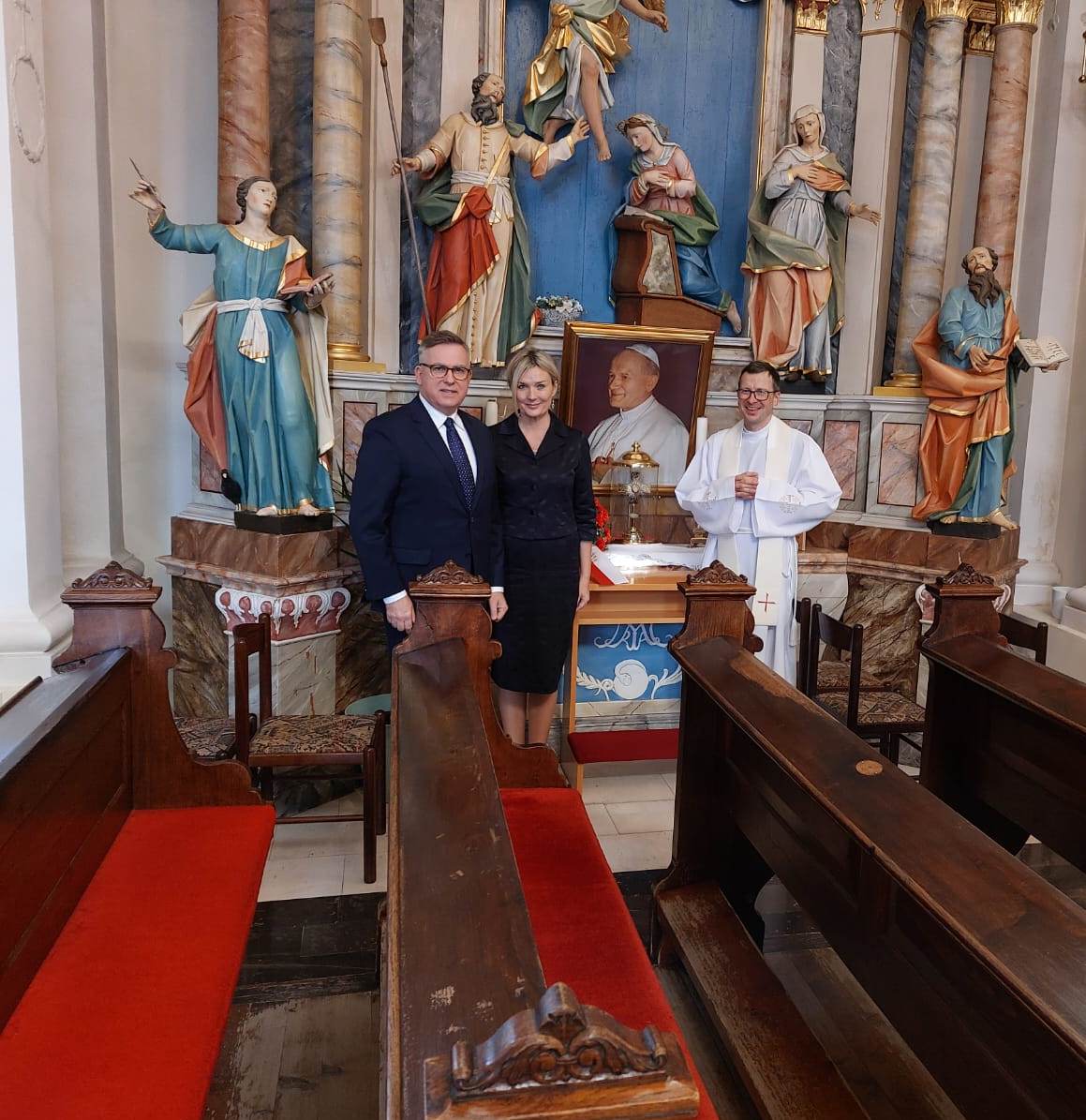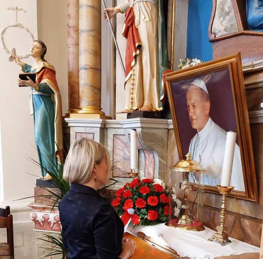 Ob 44. obletnici izvolitve Karola Wojtyła za vrhovnega predstavnika Svetega sedeža in v spomin na izvolitev poljskega papeža, ki ga v liturgičnem letu praznujemo 22. oktobra, je veleposlanik Republike Poljske v Sloveniji Krzysztof Olendzki s soprogo Joanno Olendzko položil cvetje k relikvijam sv. Janeza Pavla II v cerkvi sv. Nikolaja v Dolnjem Logatcu.