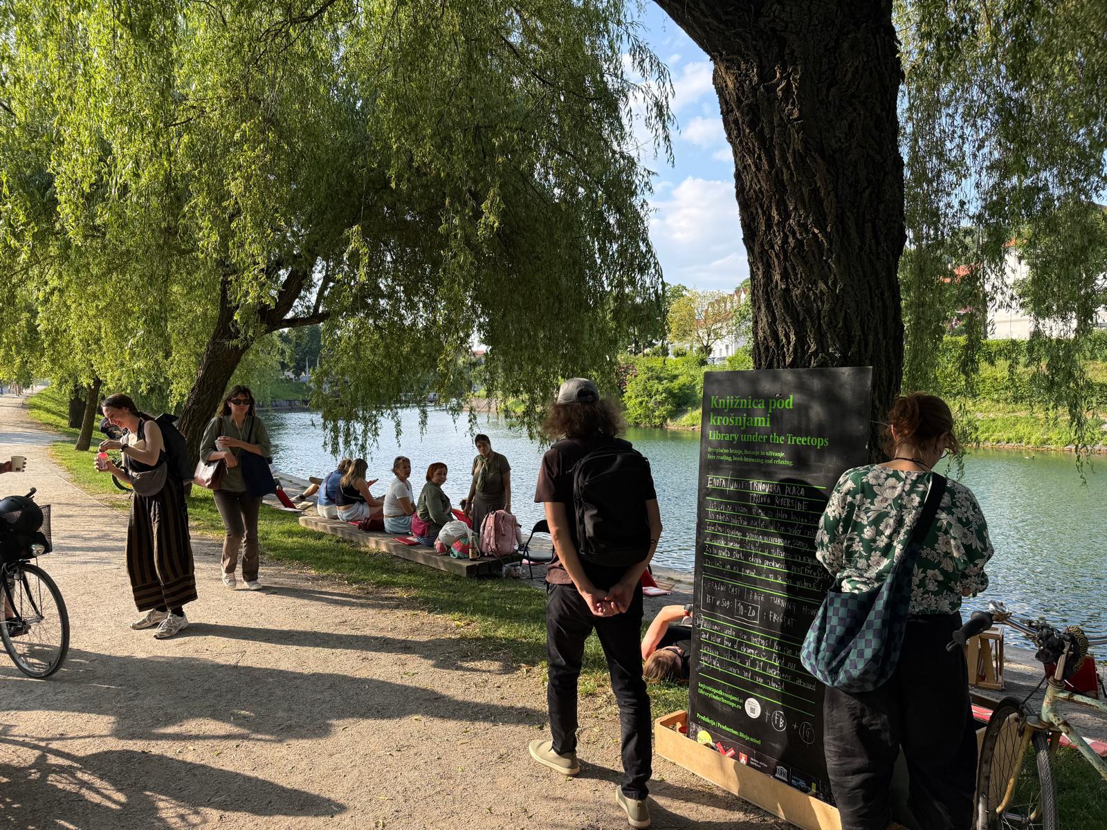 V petek, 5. junija 2025, se je odpravnik poslov na Veleposlaništvu Republike Poljske v Ljubljani Łukasz Paprotny udeležil odprtja projekta Knjižnica pod krošnjami, ki se letos odvija že enaindvajsetič (www.knjiznicapodkrosnjami.si). Knjižnice na prostem najdete na 21 lokacijah v Ljubljani in drugih slovenskih mestih. Na odprtju smo ob pici in domačem pecivu prisluhnili Kikijinemu koncertu in listali po knjigah – tudi po knjigah iz različnih evropskih držav, ki so jih knjižnici podarili člani EUNIC-a in so bralcem na voljo na posebni polici. Veseli nas, da je tam našla svoje mesto tudi poljska literatura, ki je prevedena v slovenščino.