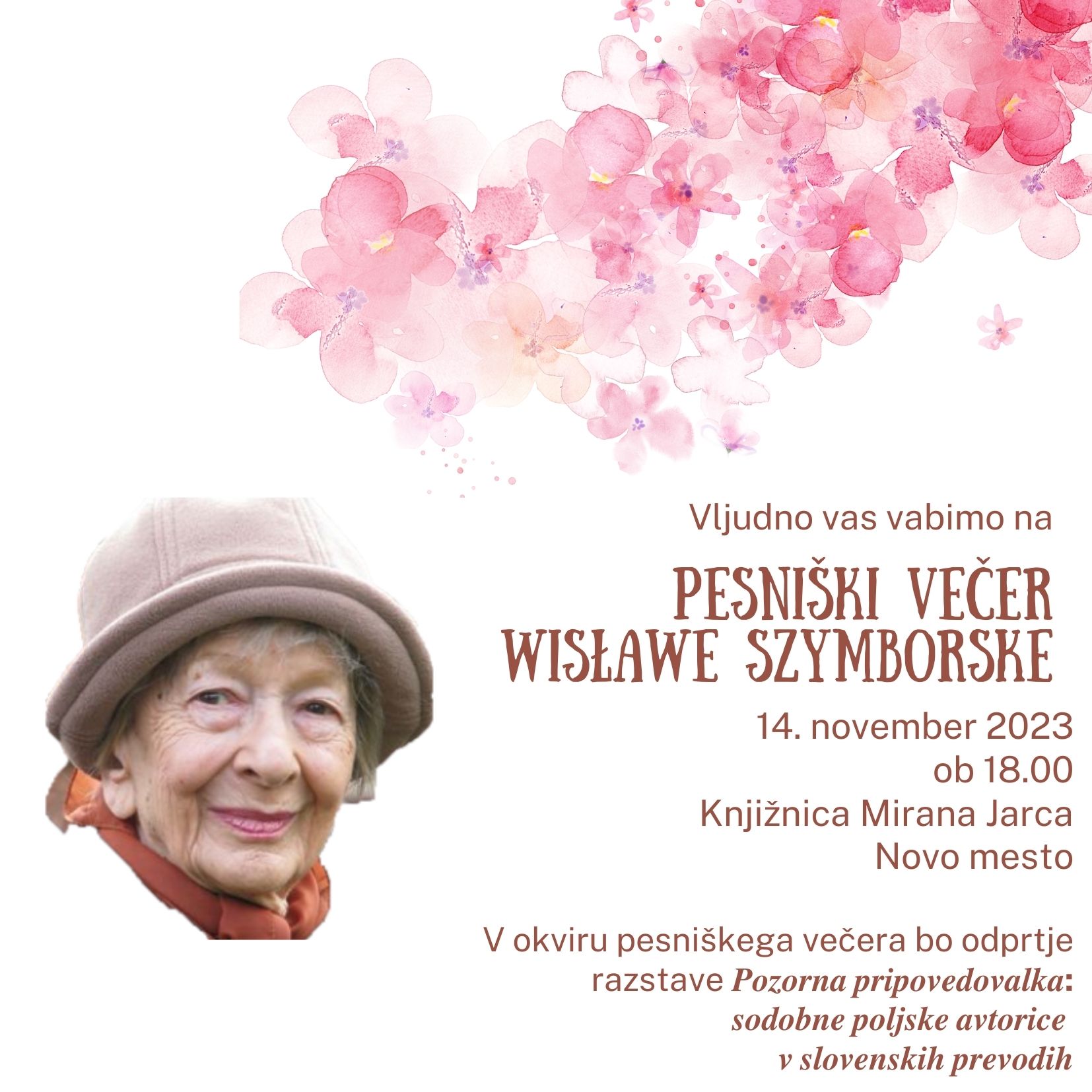 14. novembra, v letu poljske pesnice Wisławe Szymborske, se je v Mestni knjižnici Mirana Jarca v Novem mestu odvil literarni večer, posvečen Nobelovi nagrajenki. Srečanje s poezijo Wisławe Szymborske je pripravila neformalna skupina Nic dwa razy, v kateri sodelujejo sodelavci Polonistike z Oddelka za slavistiko na Filozofski fakulteti v Ljubljani.