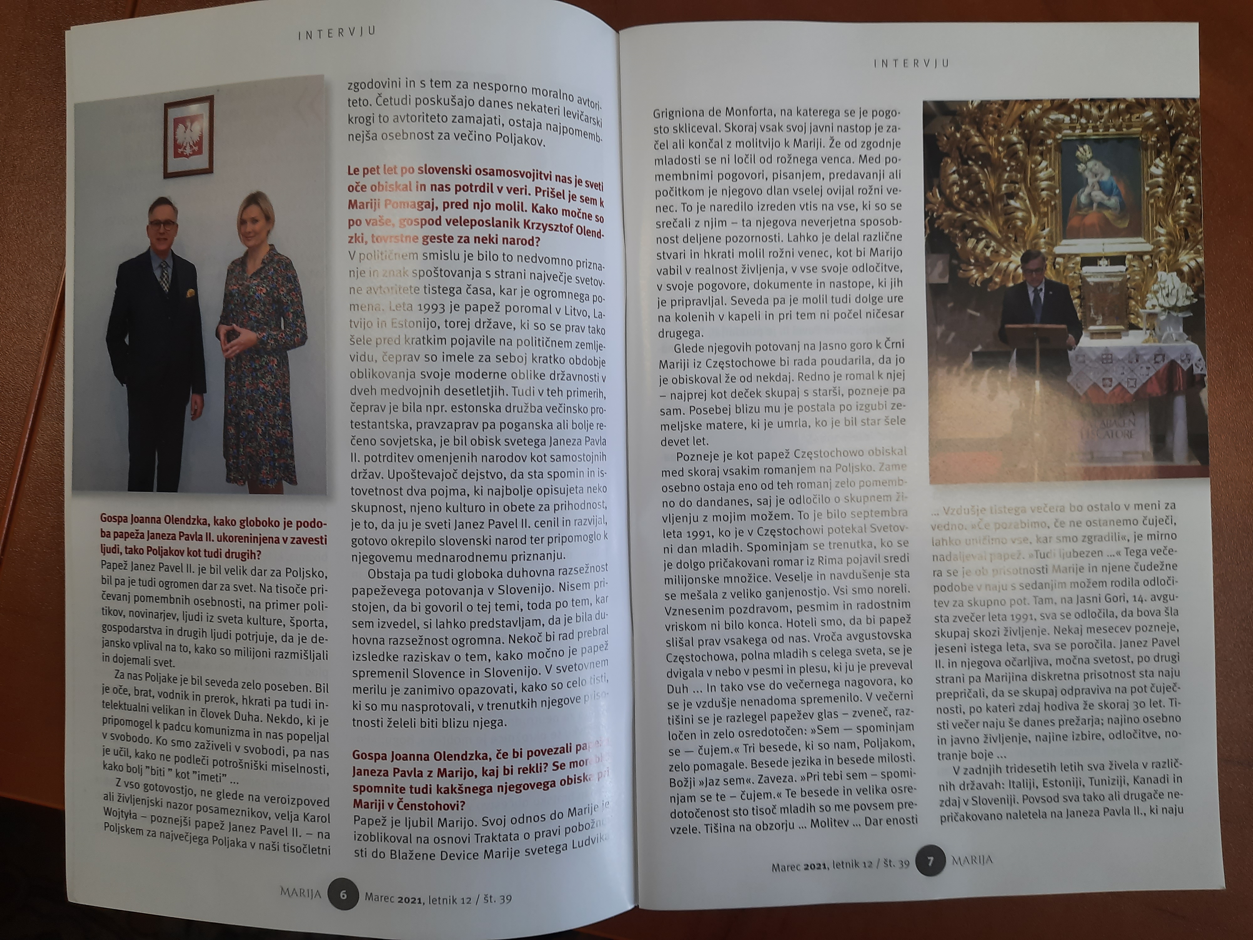 4. Le pet let po slovenski osamosvojitvi nas je sveti oče obiskal in nas potrdil v veri. Prišel je sem k Mariji Pomagaj, pred njo molil. Kako močne so po vaše, gospod veleposlanik Krzysztof Olendzki, tovrstne geste za neki narod?