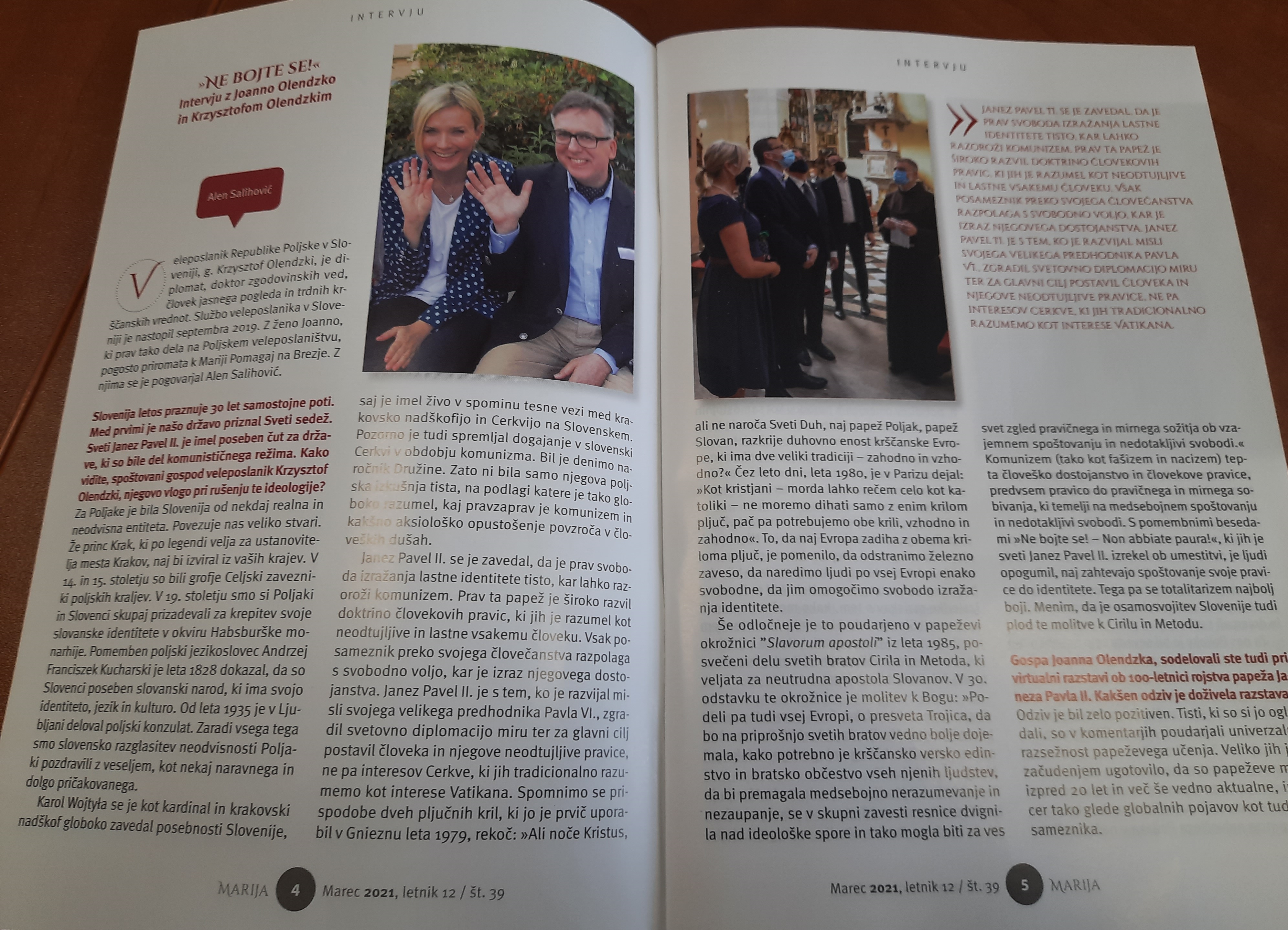 Ob skorajšnji 25. obletnici prvega obiska Janeza Pavla II. v Sloveniji sta o vlogi sv. Janeza Pavla II. v svetu, v Evropi in na Poljskem v pogovoru z Alenom Salihovićem spregovorila Joanna in Krzysztof Olendzki, ki sta predstavila tudi svojo osebno zgodbo. Papež je obiskal Slovenijo dvakrat: maja 1996 in septembra 1999.