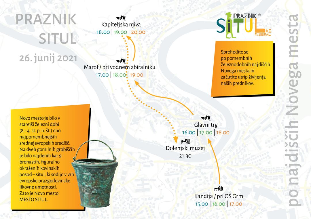 Sprehodite se po pomembnih železnodobnih najdiščih Novega mesta, ter začutite utrip življenja prednikov. V letu 2021 Praznik situl poteka na več prizoriščih – arheoloških najdiščih. Še posebej vas vabimo, da obiščete in spoznate gostje s Poljske: ArcheoGlass, Arheološki muzej Biskupin in Eryka Popkiewicza, ki vam bodo pričarali način življenja prednikov. Prepičani smo, da vas bodo navdušili za obisk Poljske!