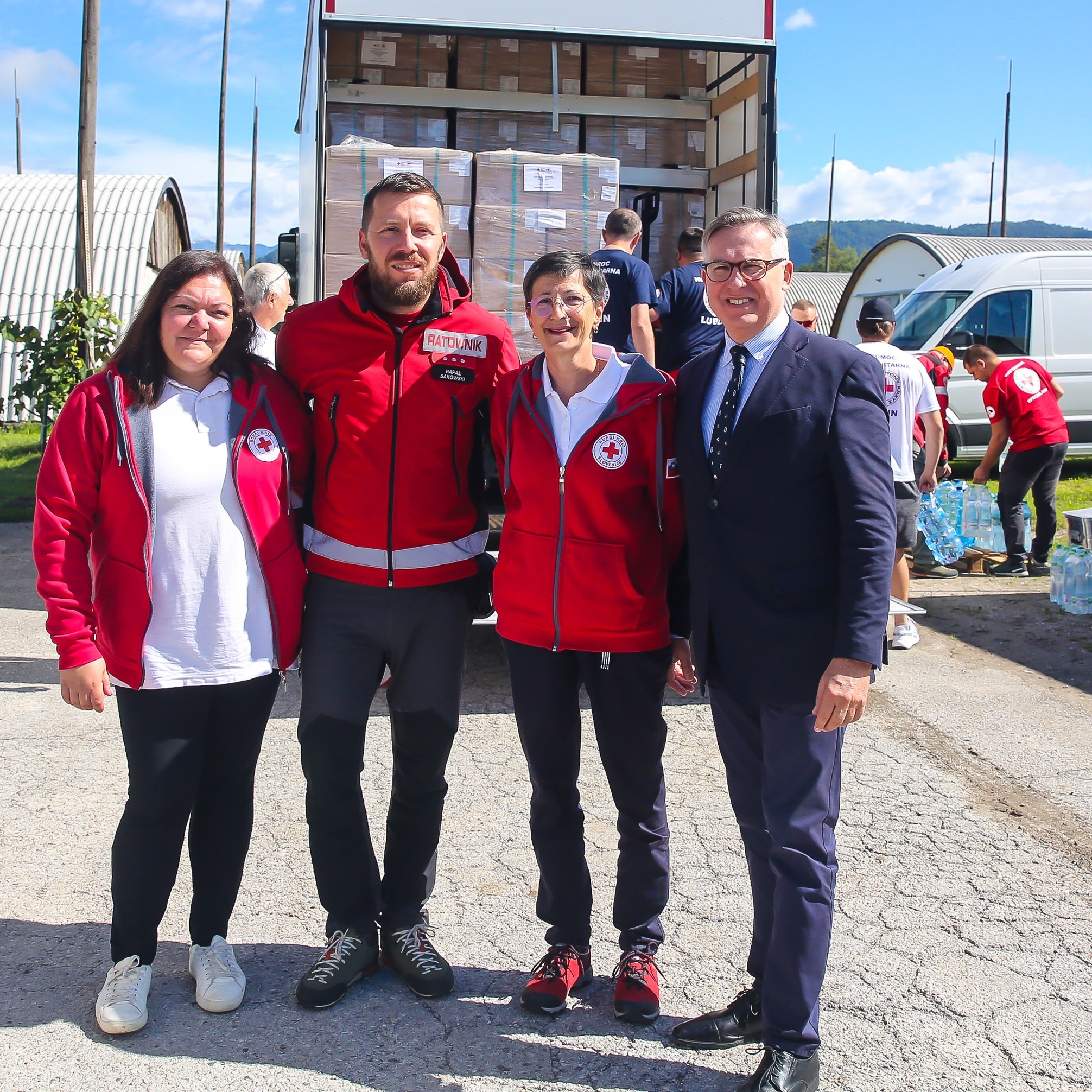 Veleposlanik Krzysztof Olendzki in konzul Szymon Białek sta se srečala s člani poljskega Rdečega križa v logističnem centru Rdečega križa Slovenije v Celju, kjer sta se pogovarjala o nadaljnji pomoči Poljske Sloveniji. Veleposlanik Olendzki se je poljskemu Rdečemu križu zahvalil za hiter odziv in takojšnje posredovanje pomoči.