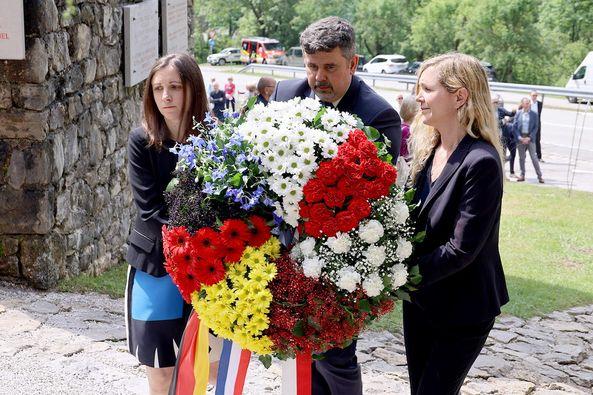 Skupni venec držav weimarskega trikotnika na spominski slovesnosti ob 79. obletnici osvoboditve koncentracijskega taborišča Mauthausen-Ljubelj