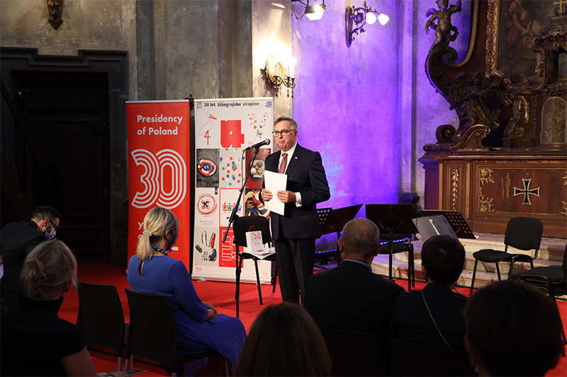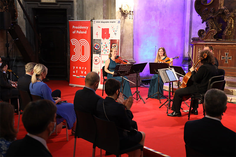Letno predsedovanje Poljske Višegrajski skupini (V4) se je zaključilo s koncertom srednjeevropske glasbe v izvedbi kvarteta Floris v Križevniški cerkvi v Ljubljani. Ob tej priložnosti je veleposlanik Republike Poljske Krzysztof Olendzki simbolično predal vodenje V4 veleposlaniku Madžarske Andorju Dávidu.