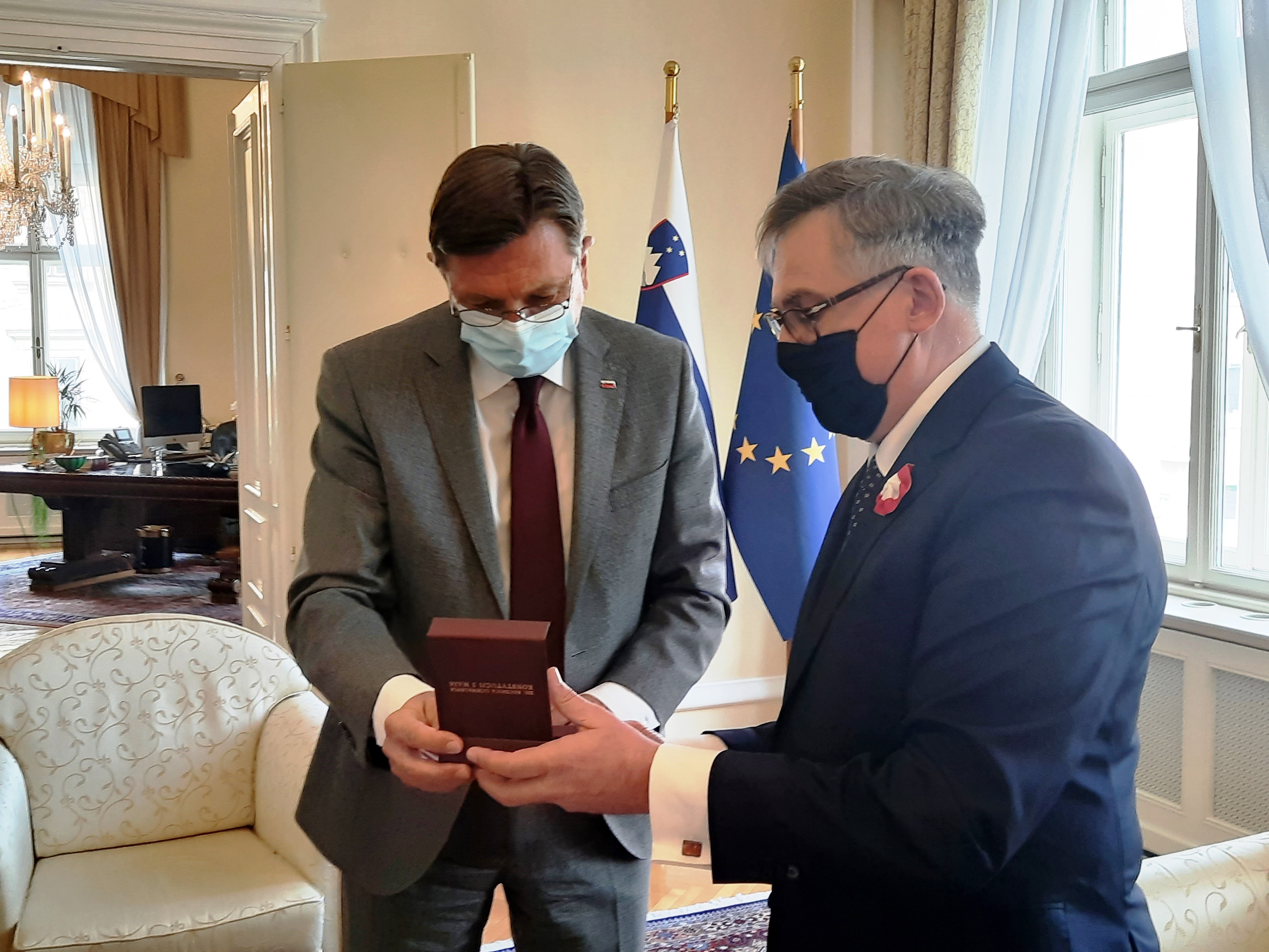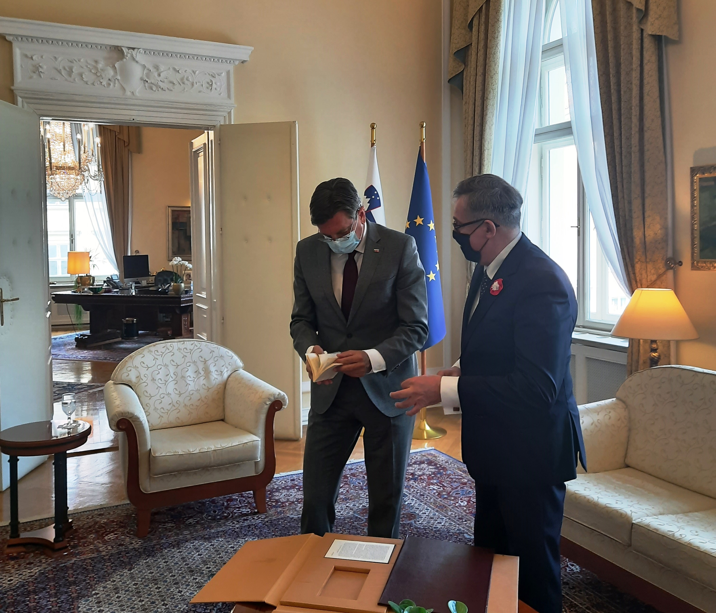 Ob tej priložnosti je veleposlanik Olendzki izročil predsedniku Pahorju faksimile izvirnega besedila Ustave ter kopijo njene prve izdaje v angleškem jeziku ter priložnostno spominsko medaljo, ki jo je ob 230. obletnici sprejema ustave 3. maja dal izdelati Sejm Republike Poljske.