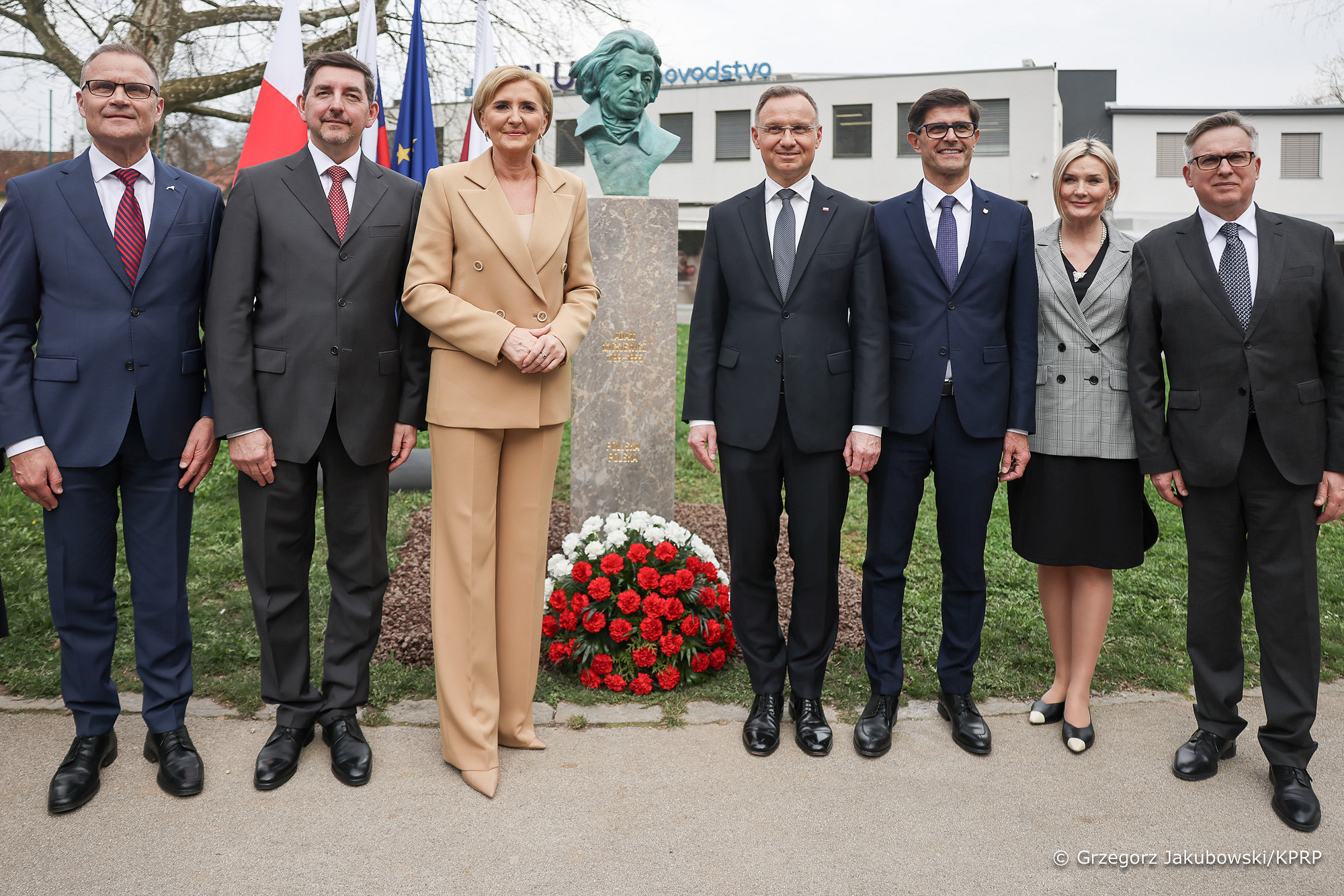 Veleposlaništvo Republike Poljske je v sodelovanju z Mestno občino Kranj na svetovni dan poezije postavilo doprsni kip Prešernovega sodobnika Adama Mickiewicza (1798–1855). Slovesnega odkritja kipa se je udeležil poljski predsednik Andrzej Duda s soprogo. Zbrane so nagovorili predsednik Republike Poljske Andrzej Duda, v imenu predsednice Republike Slovenije njen soprog Aleš Musar, poljski veleposlanik Krzysztof Olendzki, župan Kranja Matjaž Rakovec in generalni direktor podjetja MAN Truck & Bus Slovenija Jan Löwhagen.