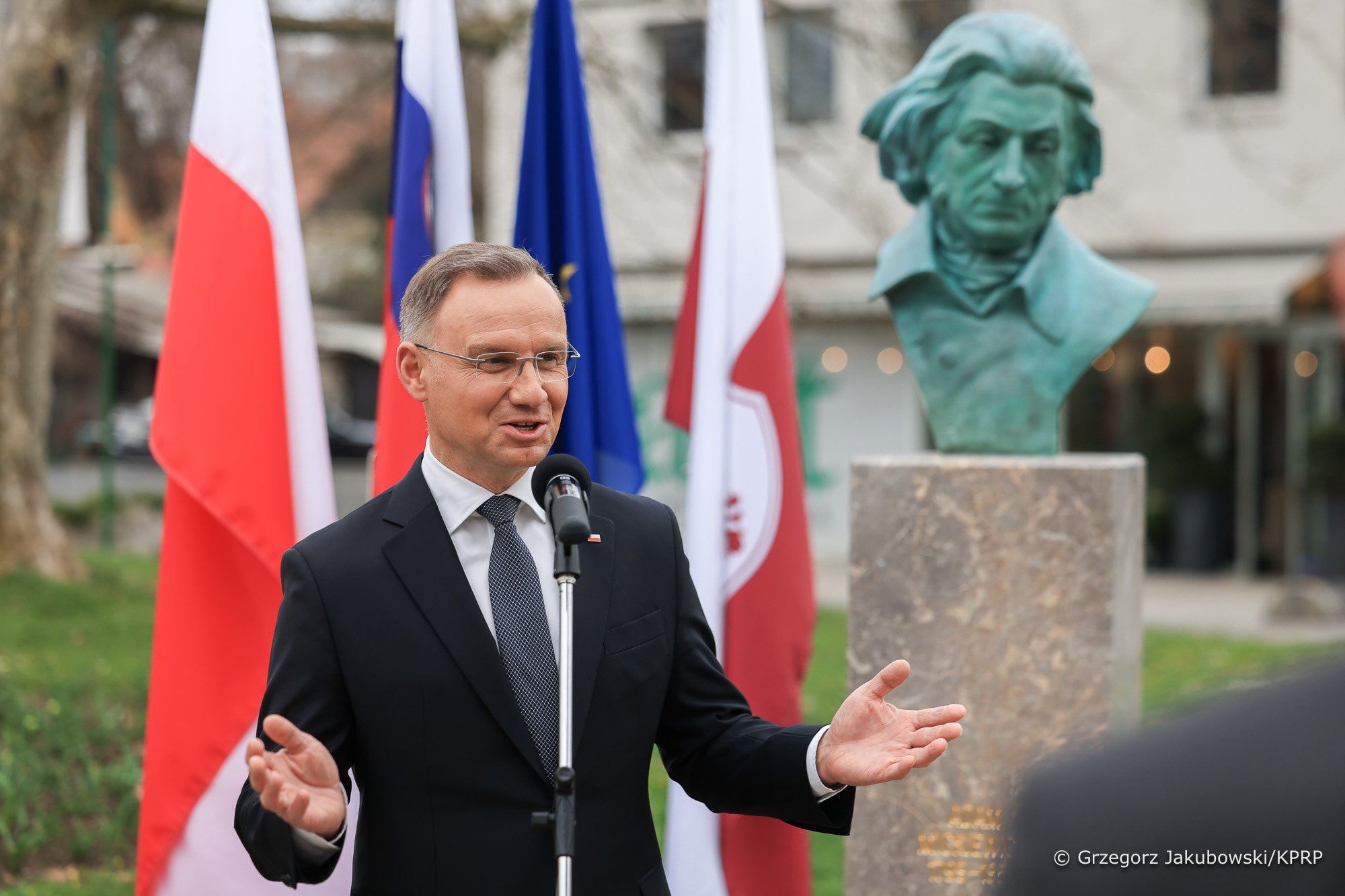 Poudaril je , da ima spomenik Adamu Mickiewiczu v Kranju, v Sloveniji, velik simbolni pomen. Ni posvečen le poljskemu pesniku, pomembnemu glasniku vélike, demokratične, duhovno močne Evrope, temveč zlasti prijateljstvu in razumevanju, ki ga predstavljata Mickiewicz in Prešeren kot simbolni osebnosti Poljakov in Slovencev, povezana v duhu slovanskega pesništva v obdobju romantike. Je simbol ljubezni do domovine, spoštovanja do drugih kultur in jezikov ter prizadevanja za svobodo in socialno pravičnost. Ta spomenik bo spominjal na naše korenine, našo zgodovino ter vrednote, ki so skupne Poljakom in Slovencem.