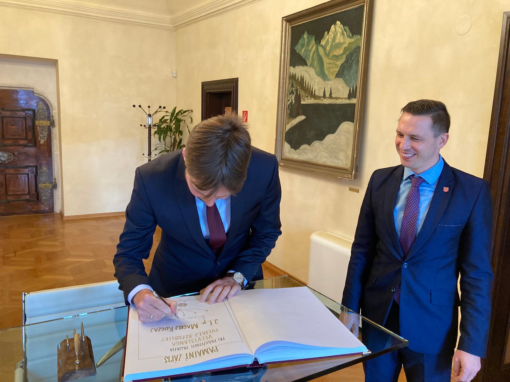 Wizyta w Bańskiej Bystrzycy rozpoczęła się od rozmowy z Przewodniczącym Samorządowego Kraju Bańska Bystrzyca Ondrejem Lunterem. Tematami dyskusji były współpraca samorządowa, obecność polskich firm w regionie a także potencjał turystyczny naszych krajów. Ambasador odwiedził również Uniwersytet Mateja Bela w Bańskiej Bystrzycy, który tradycyjnie jest jednym z najważniejszych miejsc polsko-słowackiej współpracy akademickiej. Spotkanie pozwoliło na omówienie przyszłości tej współpracy z przedstawicielami Rektoratu Uniwersytetu Mateja Bela oraz Wydziału Humanistycznego.