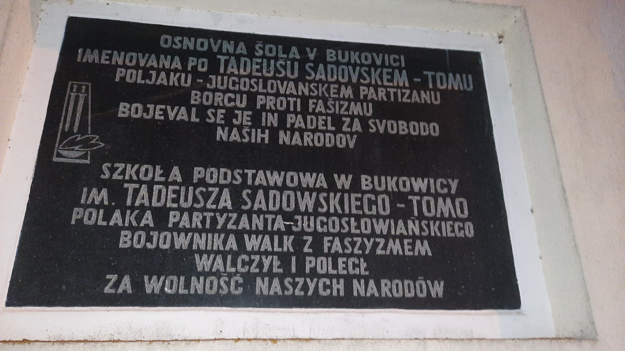 Założona w 1903 r. szkoła w wiosce Bukovica w gminie Škofja Loka została nazwana imieniem walczącego na terenach Słowenii podczas II wojny światowej polskiego partyzanta Tadeusza „Tomo” Sadowskiego, bohatera akcji dywersyjnej w Jaskini Postojna w 1944 r., który w tym samym roku zginął w pobliskiej wiosce Praprotno.