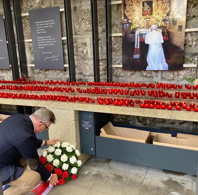 W związku z 45. rocznicą pontyfikatu Jana Pawła II Ambasador RP w Słowenii Krzysztof Olendzki i Joanna Olendzka złożyli w niedzielę 22 października 2023, w dniu wspomnienia liturgicznego Papieża Polaka, biało-czerwone kwiaty w miejscu upamiętniającym polskiego papieża i jego pierwszą pielgrzymkę do Słowenii w narodowym sanktuarium Słowenii "Marija Pomagaj" w Brezje.