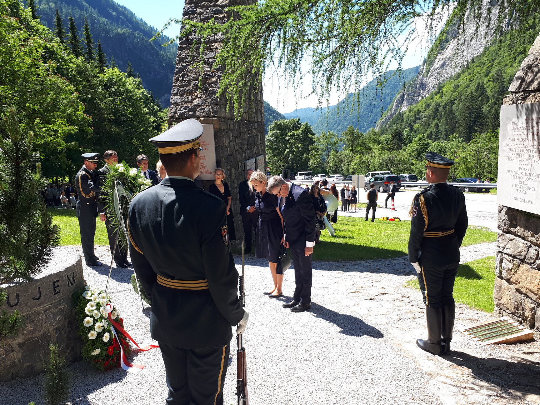 Ambasador RP w Słowenii Krzysztof Olendzki wraz z małżonką Joanną Olendzką złożyli wieniec pod pomnikiem "J’accuse" upamiętniającym ofiary niemieckiego nazistowskiego obozu koncentracyjnego w Ljubelj podczas uroczystości w 75. rocznicę wyzwolenia obozu.