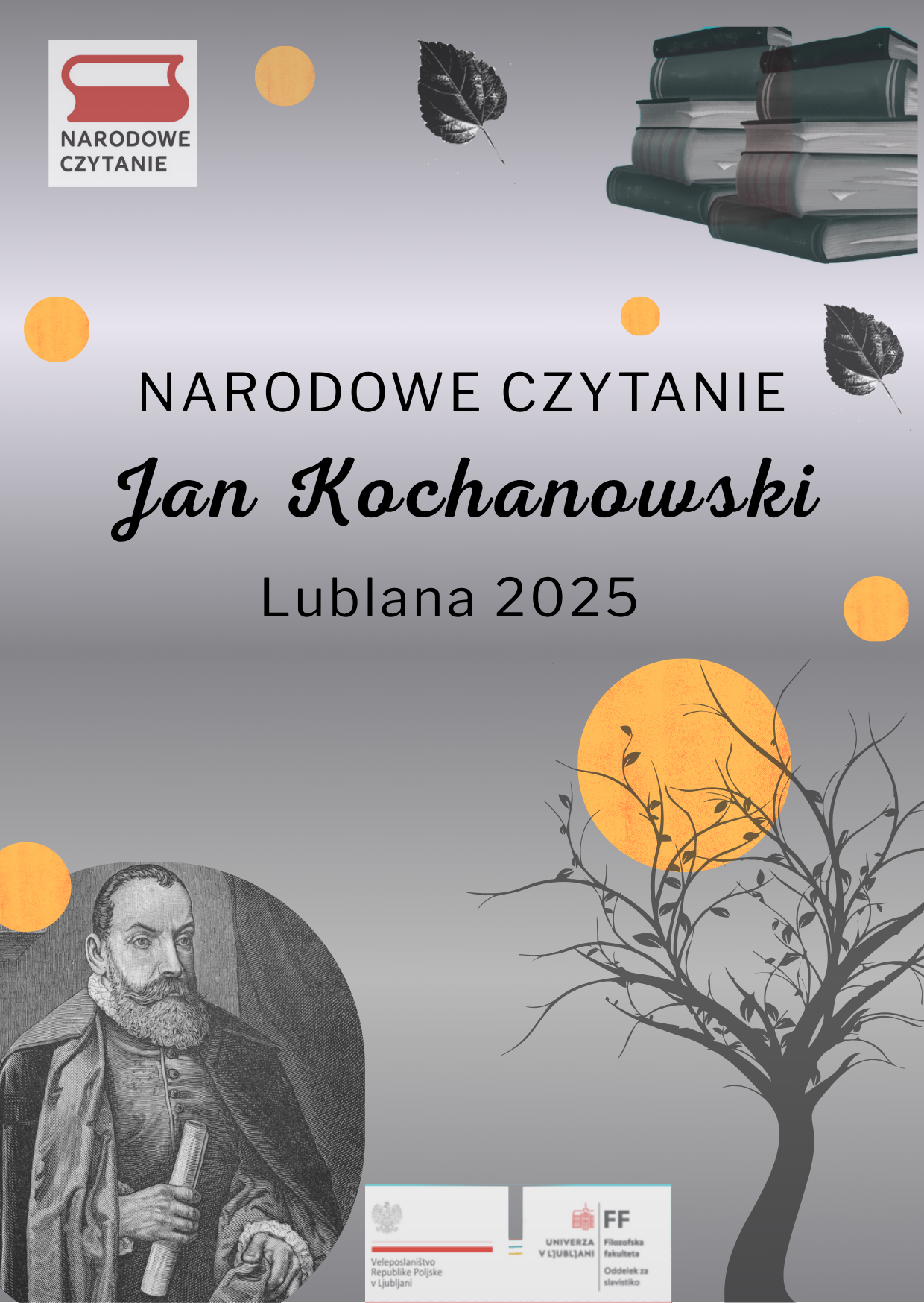 Podczas spotkania zaprezentowano wybór wierszy i fraszek Jana Kochanowskiego w interpretacji studentów Katedry Polonistyki Uniwersytetu Lublany oraz polskich studentów programu Erasmus: Lary Gobec, Jasny Reščič, Kacpra Pawlaka, Pauliny Janssen, Małgorzaty Woźniak oraz Nikolety Batko. Literackiego charakteru wydarzenia dopełniła muzyczna oprawa Varji Kovačič Kraigher, której akompaniament stworzył subtelne tło dla poetyckich recytacji. Wiersze przedstawiono w przekładach Lojze Krakarja, Tine Debeljaka oraz Tiny Podržaj, dzięki którym słoweńska publiczność mogła usłyszeć polską klasykę w pięknej i adekwatnej interpretacji.