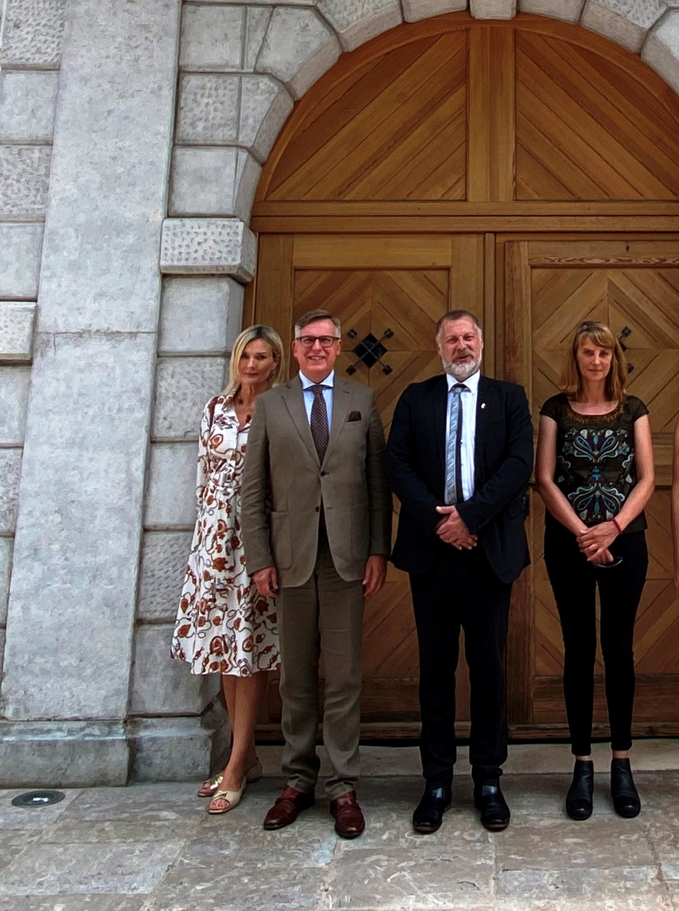 2 sierpnia 2023 r. Ambasador Krzysztof Olendzki i Joanna Olendzka odwiedzili Uniwersytet w Novej Goricy, gdzie spotkali się z Rektorem Uniwersytetu Prof. Boštjanem Golobem oraz paniami profesor Andreją Gomboc i Dorotą Korte.