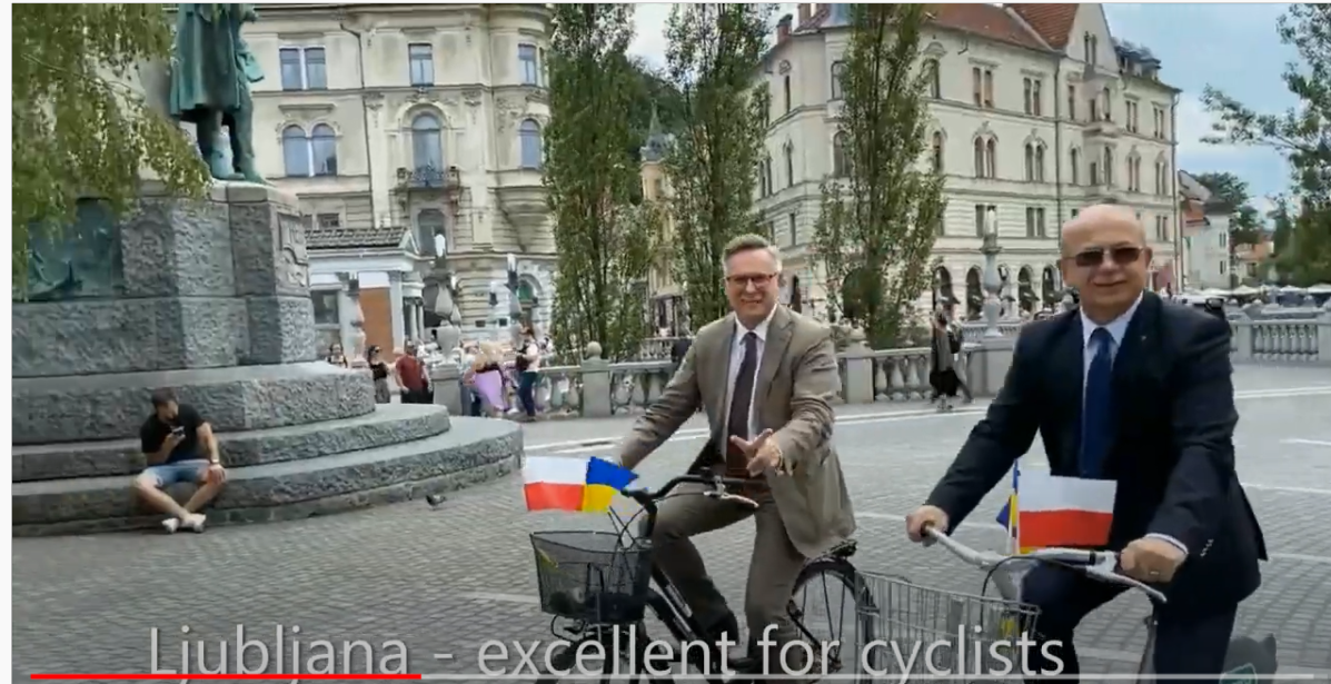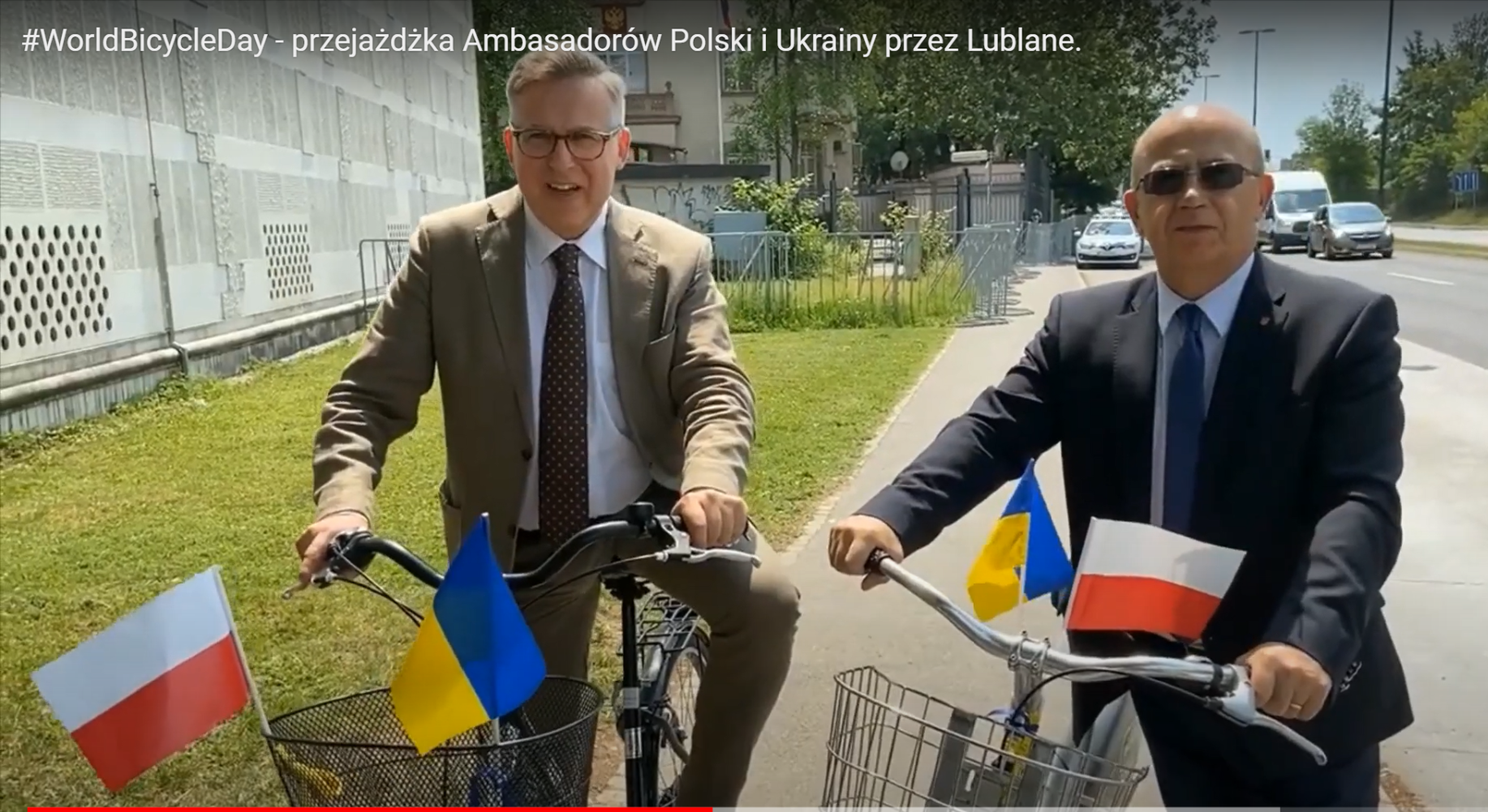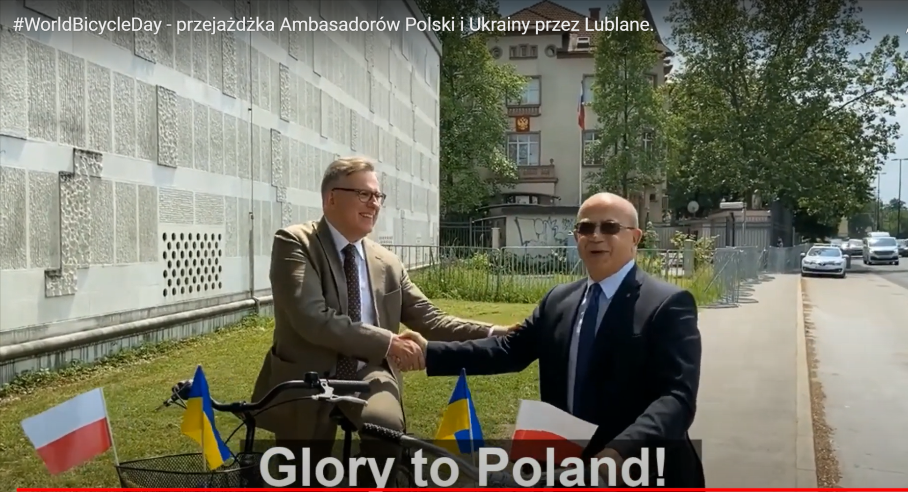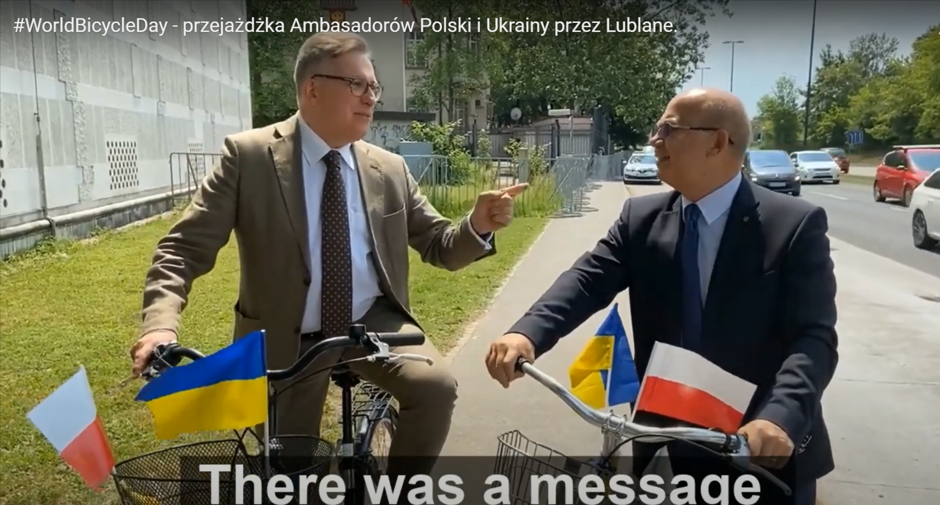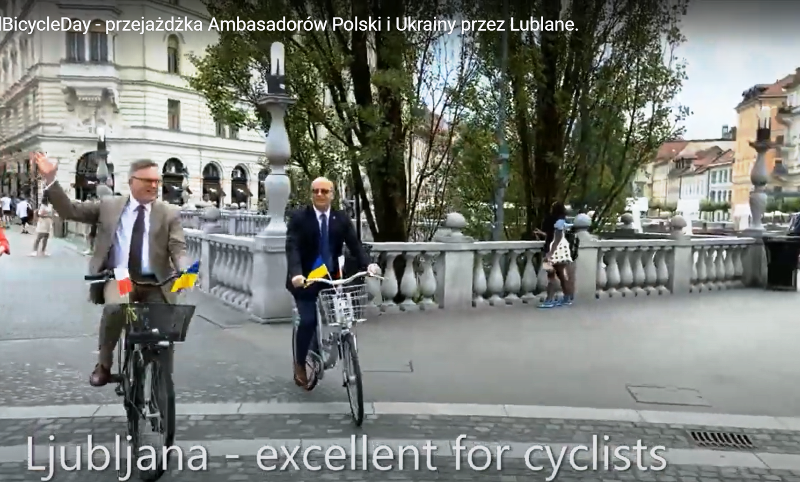 Z okazji Światowego Dnia Roweru 3.06.2022 r. Ambasador RP w Słowenii Krzysztof Olendzki i Ambasador Ukrainy Mykhailo Brodovych przejechali rowerami oznaczonych flagami polskimi i ukraińskimi przez centrum Lublany i podjęli refleksję na temat rosyjskiej dezinformacji w formie dowcipnej konwersacji pod Ambasadą Rosji w Słowenii. Film i zdjęcia z tego wydarzenia w załączeniu.