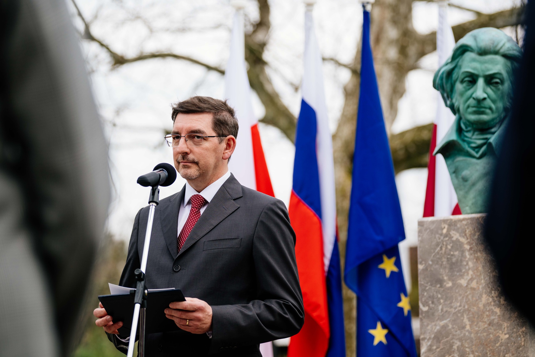 Andrzej Duda dziękował za przypomnienie i docenienie naszego wielkiego poety, wieszcza narodowego – Adama Mickiewicza, w tym parku w Kranju, razem z innymi europejskimi twórcami epoki romantyzmu.