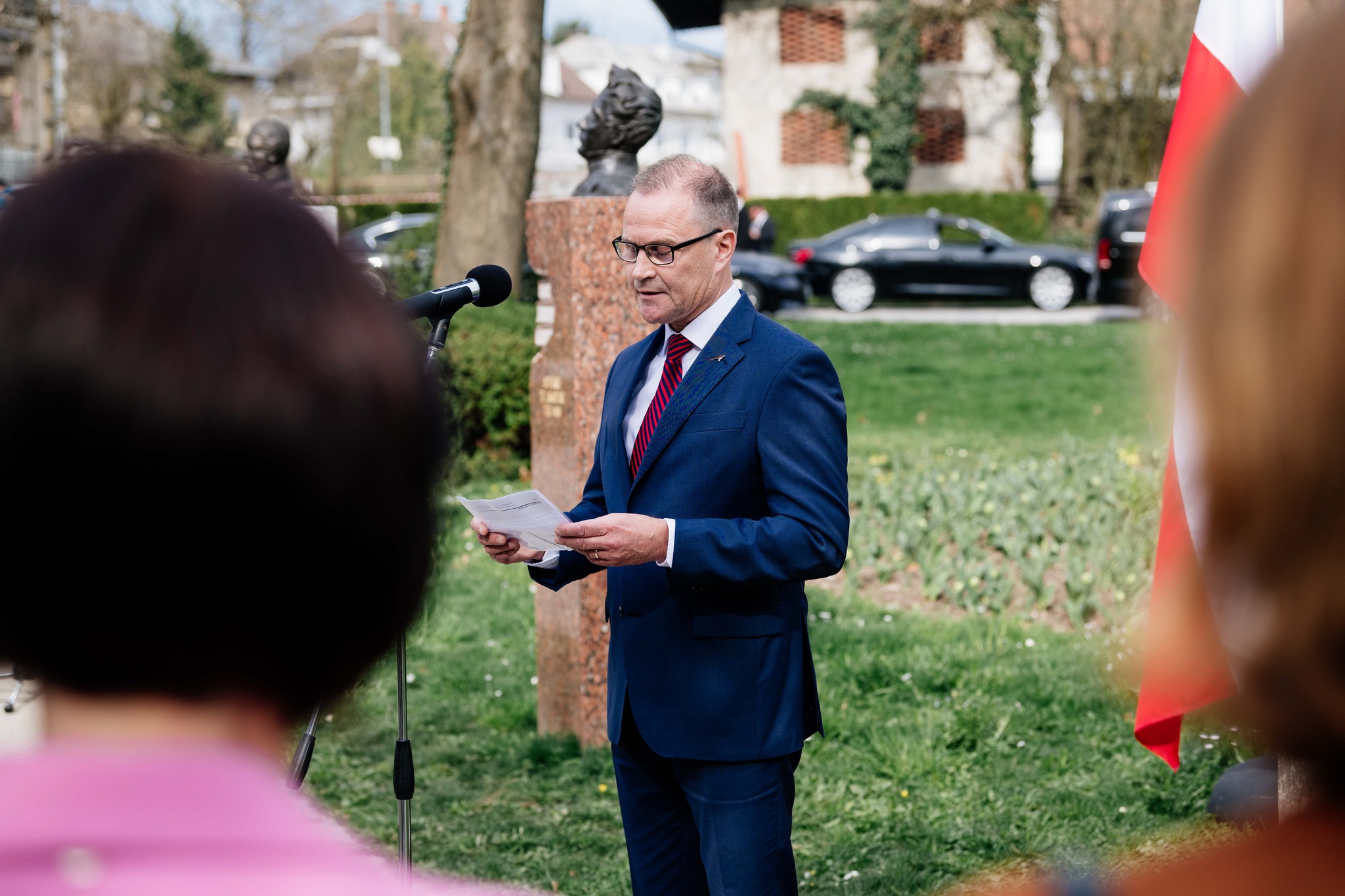 Podziękował także przedstawicielowi firmy MAN, produkującej w polskich Starachowicach autobusy elektryczne zakupione przez miasto Kranj, panu Janowi Loewhagenowi, za sfinansowanie postumentu i montażu pomnika, a także Panu burmistrzowi Matjažowi Rakovcowi i jego współpracownikom z Urzędu Miasta Kranj.