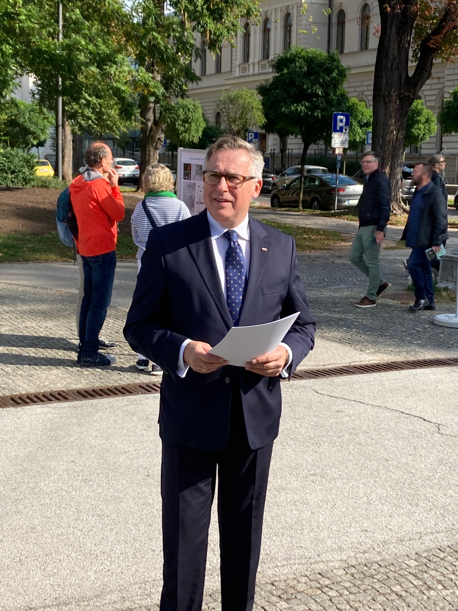 W dniu 6. października br. przed Galerią Sztuki Współczesnej/Moderna Galerija w Lublanie Ambasador RP Krzysztof Olendzki otworzył wystawę „Mamo, ja nie chcę wojny” powstałą w ramach projektu polskich archiwów państwowych i ukraińskiego portalu "Mom, I see war". "To zdumiewające, w jak podobny sposób dzieci wyrażają swój ból. To właśnie dzieci są największą ofiarą tej wojny" – powiedział podczas otwarcia Ambasador Olendzki.