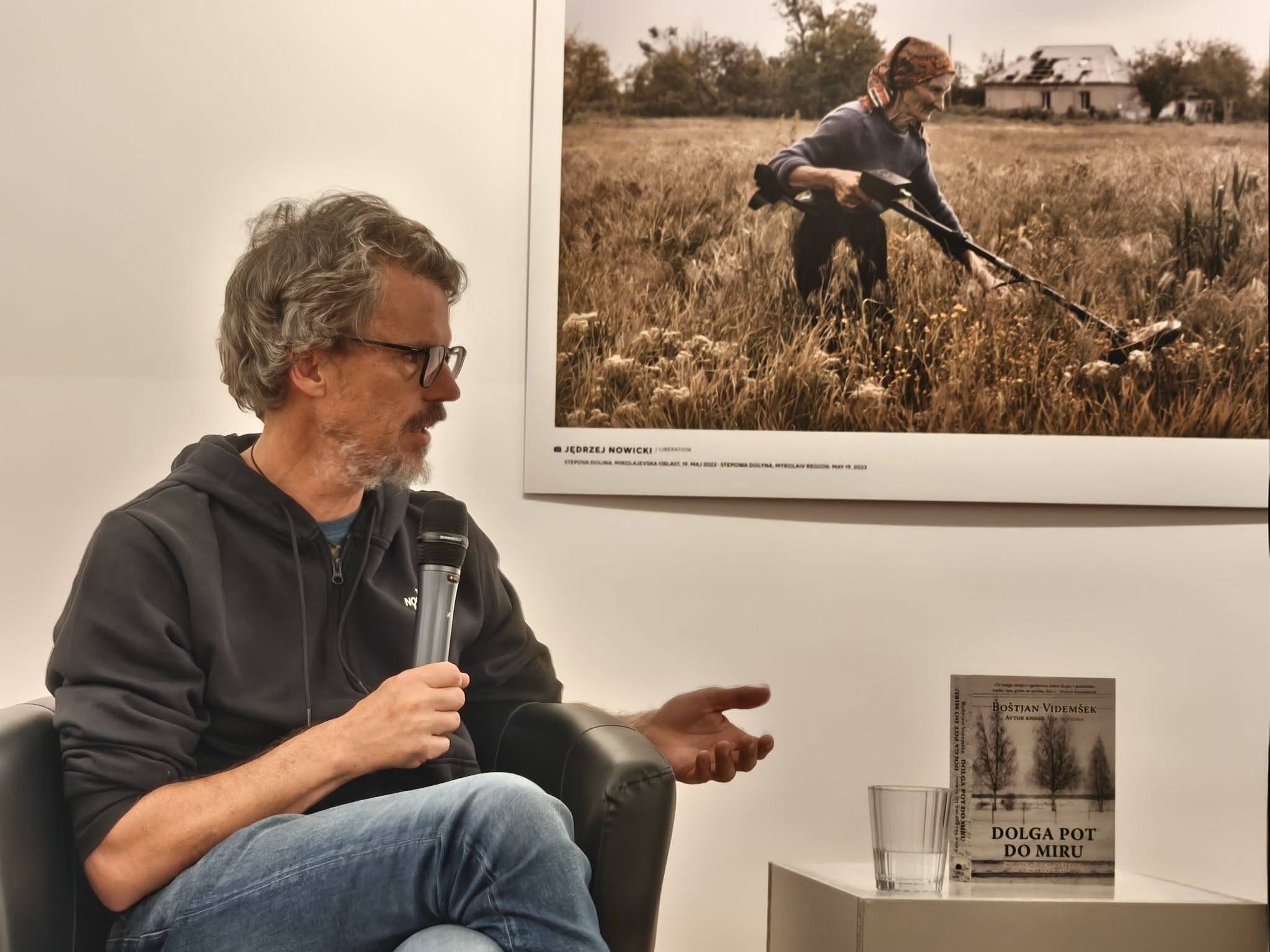 W ramach programu wieczoru odbyła się także premierowa prezentacja książki Boštjana Videmška i Abhy Valentiny Lo Surdo „Dolga pot do miru”. Wątek książki, poświęconej pytaniu, czy wojna kiedykolwiek naprawdę się kończy, stworzył spójną narrację z fotografiami prezentowanymi na wystawie. Autorzy wskazali, że wojna nie należy ani do przeszłości, ani wyłącznie do teraźniejszości – jest doświadczeniem, które powraca i pozostawia trwałe ślady w pamięci społeczeństw oraz jednostek.