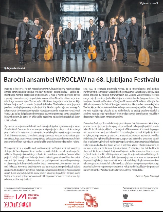W dniu koncertu w Dzienniku Delo ukazał się artykuł opisujący fascynującą historie odnalezienia zagrabionych w czasie II wojny światowej skarbów polskiej muzyki barokowej.