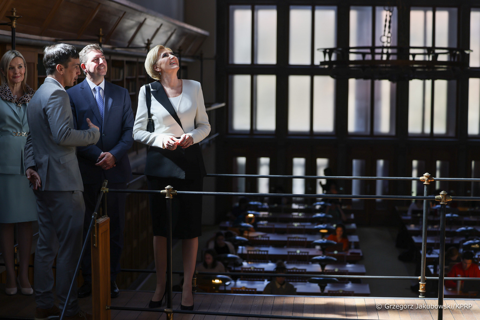Dyrekcja placówki zaprezentowała Pierwszej Damie Czytelnię Wielką, czytelnię zbiorów rękopiśmiennych oraz polonika, między innymi drugie wydanie dzieła Mikołaja Kopernika O obrotach sfer niebieskich, rękopis Słoweńskich pieśni Emila Korytki oraz rękopis tłumaczenia sonetu Rezygnacja Adama Mickiewicza. Spuścizna literacka Emila Korytki, polskiego działacza niepodległościowego zesłanego z Galicji do Lublany, etnografa i badacza słoweńskiego folkloru, który zaprzyjaźnił się z France Prešerenem i wywarł ogromny wpływ na jego twórczość jest bardzo bogata. Z inspiracji Korytki Prešeren dokonał tłumaczenia wybranych poezji Mickiewicza na język słoweński i niemiecki.