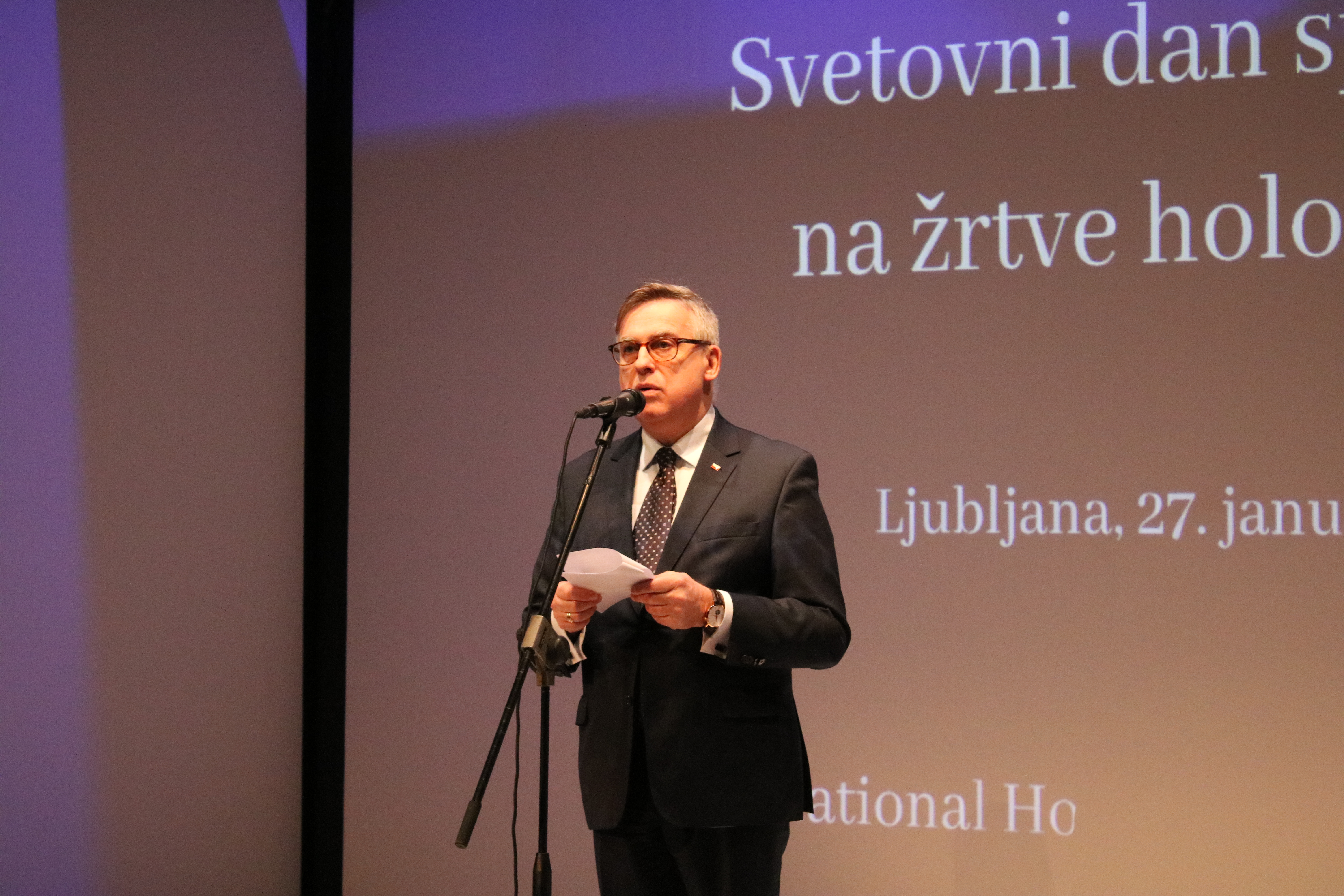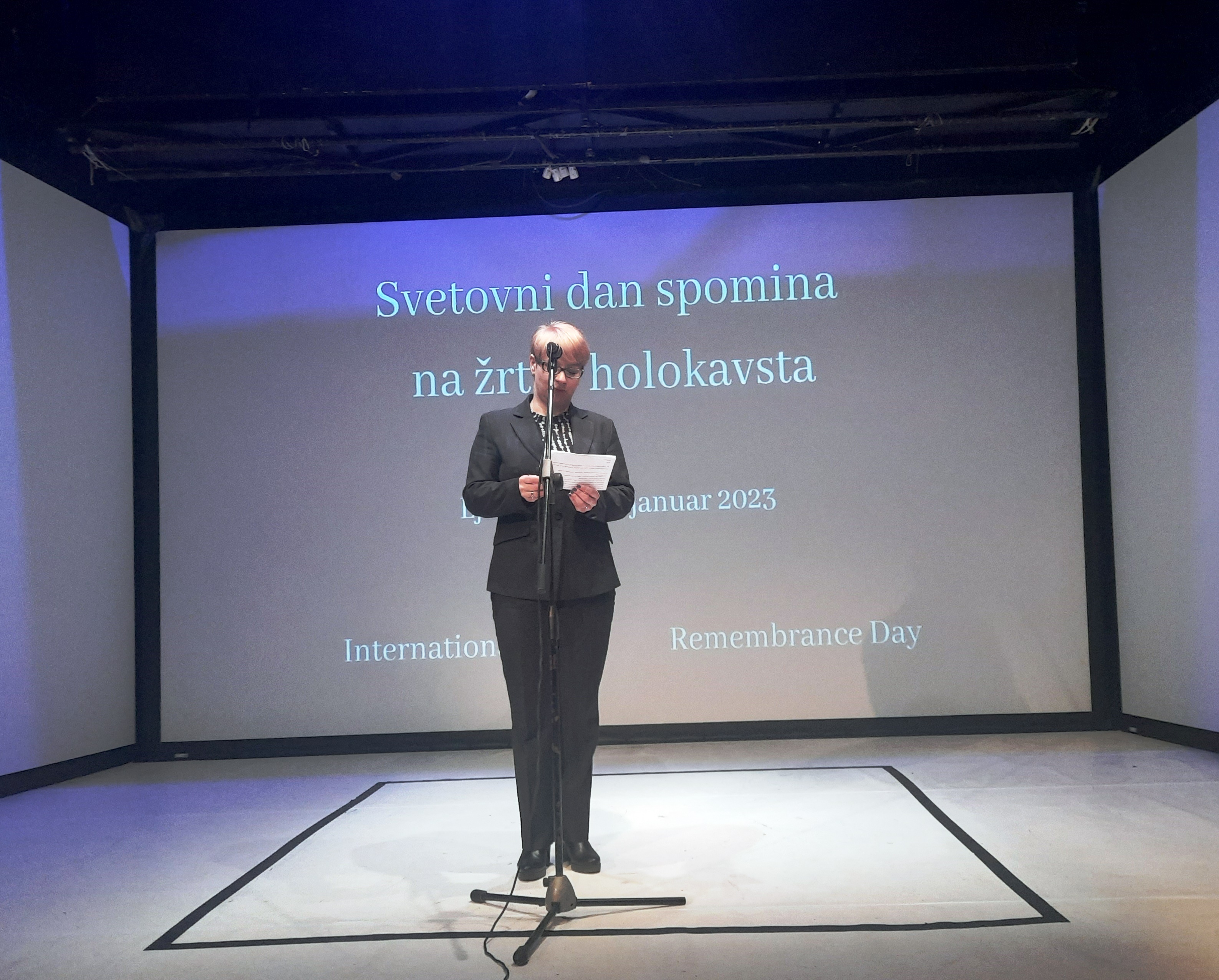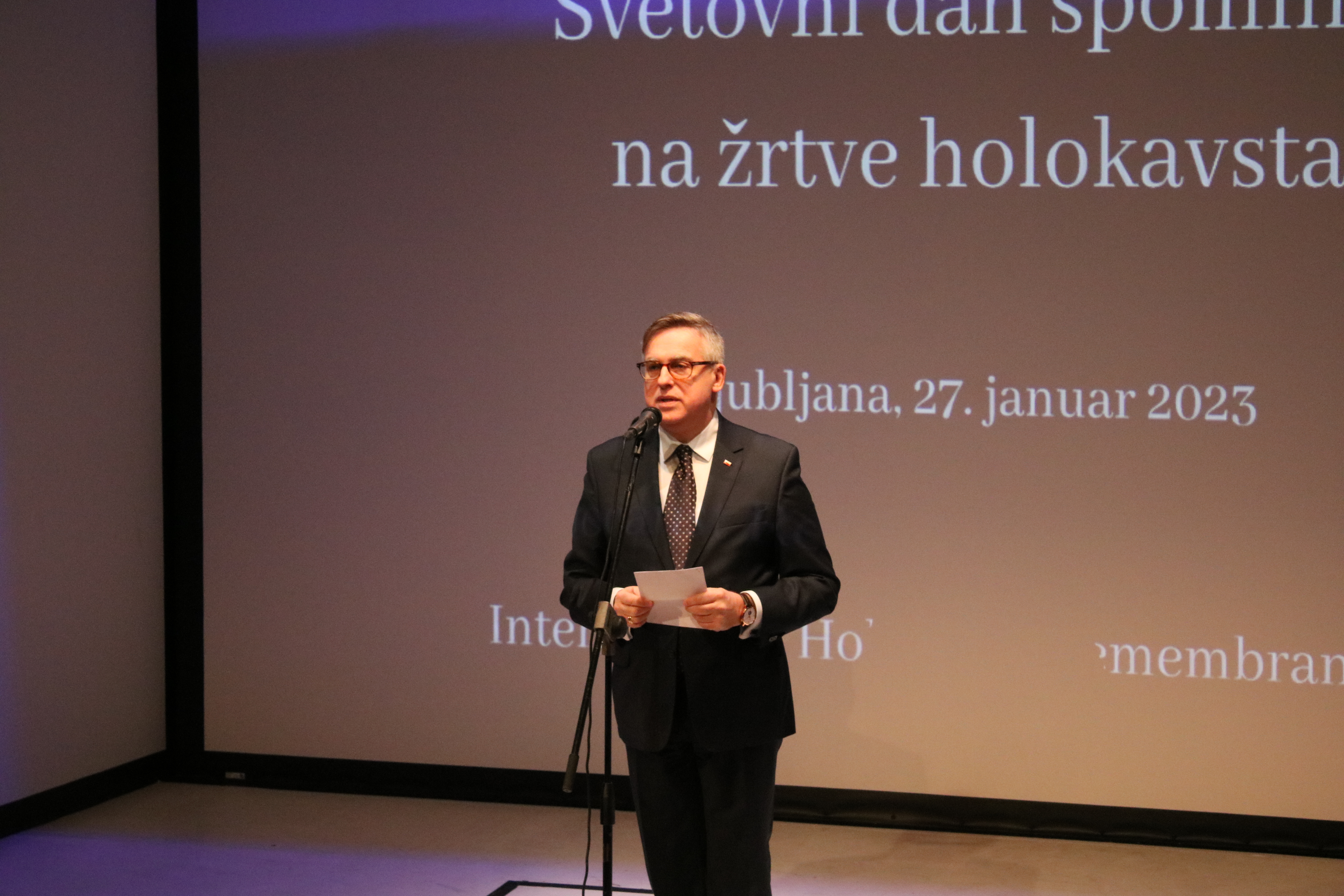 Szefowa przedstawicielstwa KE w Słowenii Jerneja Jerše w swoim wystąpieniu zwróciła uwagę na europejski wymiar Holocaustu oraz wagę budowania europejskiej kultury pamięci o jego ofiarach.