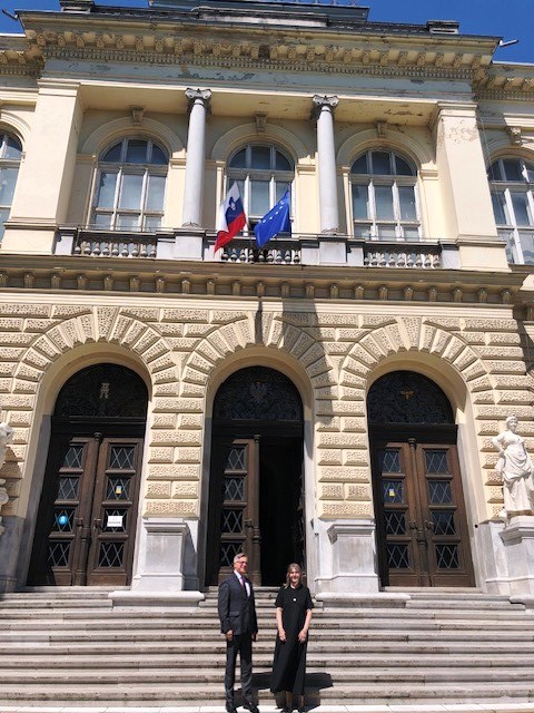 27.07.2023 Ambasador Krzysztof Olendzki odwiedził Muzeum Narodowe Słowenii w poszukiwaniu pamiątek po prof. France Stele, wybitnym humaniście i przyjacielu Polski, który w latach 1935 – 1941 pełnił funkcję Konsula Honorowego RP w Lublanie z siedzibą właśnie w obecnym gmachu Muzeum Narodowego Słowenii.