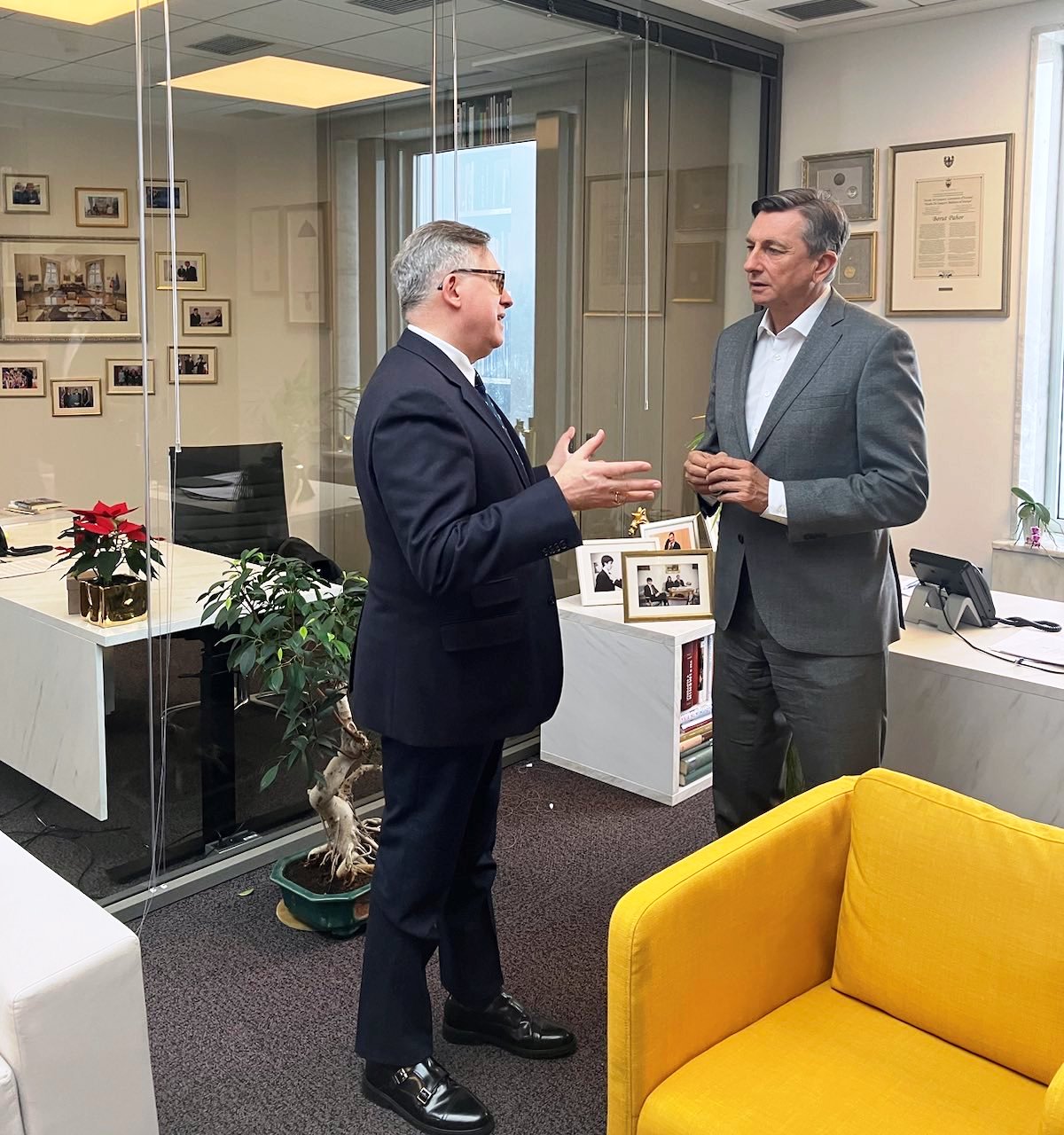 18 stycznia br. Ambasador RP w Słowenii Krzysztof Olendzki spotkał się z byłym Prezydentem RSI Borutem Pahorem. Rozmowa dotyczyła aktualnej sytuacji w Europie i świecie w związku z rosyjską agresją na Ukrainę. Wielowątkowa dyskusja była również okazją do zaproszenia Prezydenta Pahora na projekcję filmu "Warszawa. Miasto podzielone", która odbędzie się w Lublanie 27 stycznia br. w związku z Międzynarodowym Dniem Pamieci o Ofiarach Holocaustu.