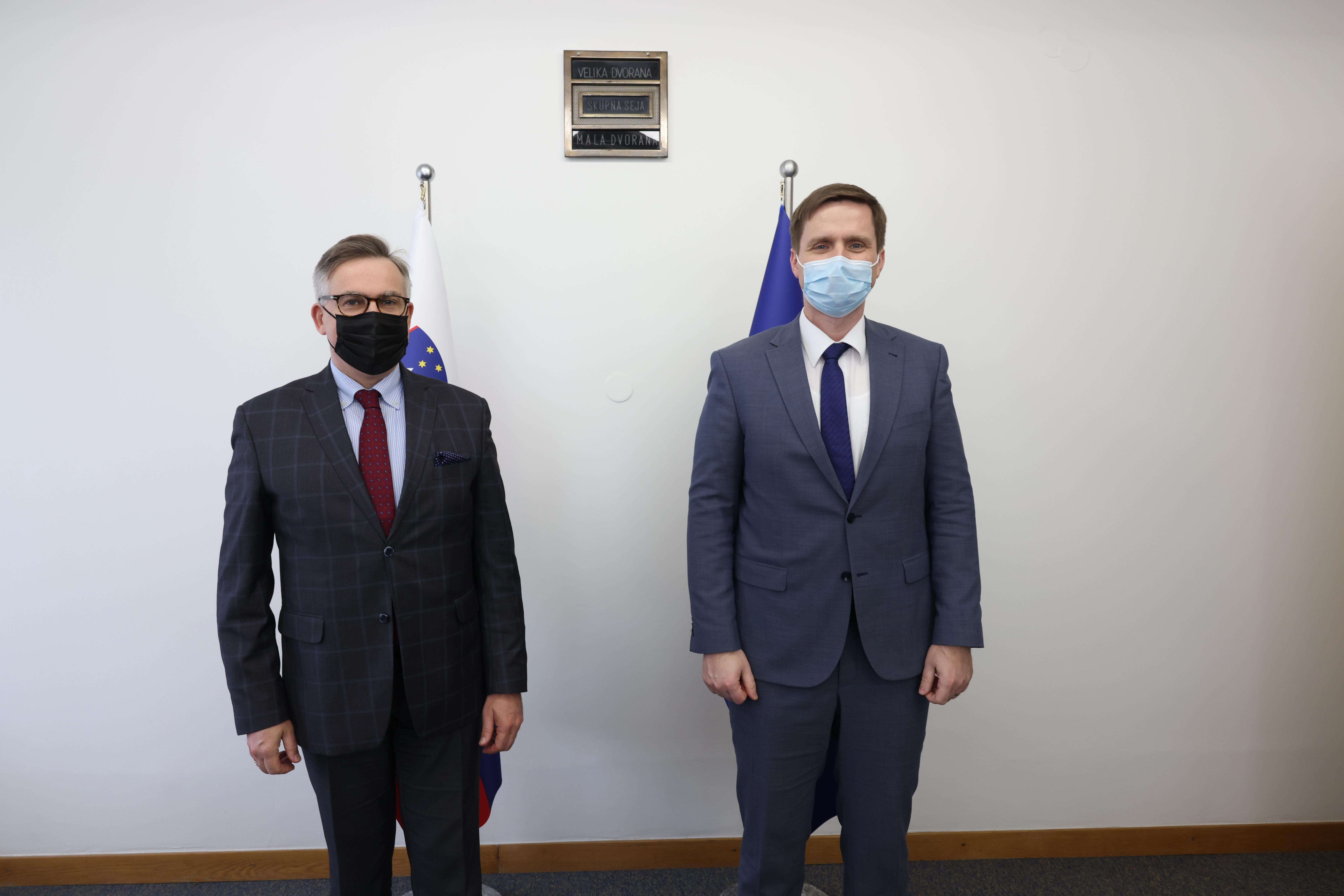 Podczas spotkania z Przewodniczącym Zgromadzenia Narodowego Słowenii Igorem Igorem Zorčičem Ambasador RP Krzysztof Olendzki omówił zagrożenia dla Europy w związku z rosyjska agresją na Ukrainę oraz przedstawił sytuację uchodźców z Ukrainy przybywających masowo do Polski.