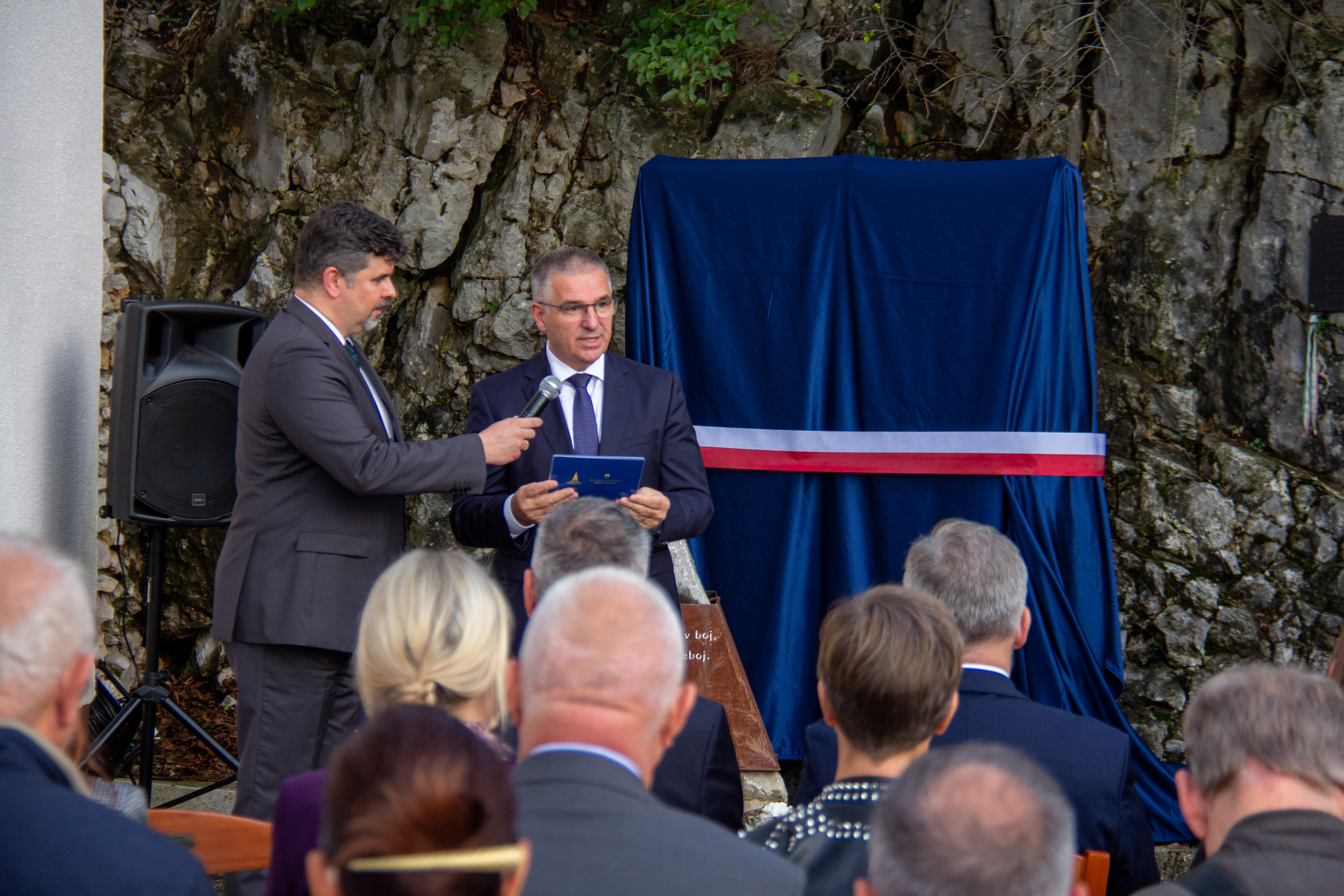 Ambasador RP Krzysztof Olendzki, Przewodniczący Rady Państwa Republiki Słowenii (wyższa izba parlamentu) Marko Lotrič, Sekretarz Stanu w Ministerstwie Obrony Rudi Medved oraz Konsul Honorowy RP w Nowej Goricy Nedjan Brataševec, wspólnie odsłonili wykonaną staraniem tutejszej placówki dwuczęściową tablicę znajdującą się przed centrum dla zwiedzających Parku Pokoju na wzgórzu Sabotin górującym nad Nową Goricą oraz przełomem rzeki Socza/Isonzo.