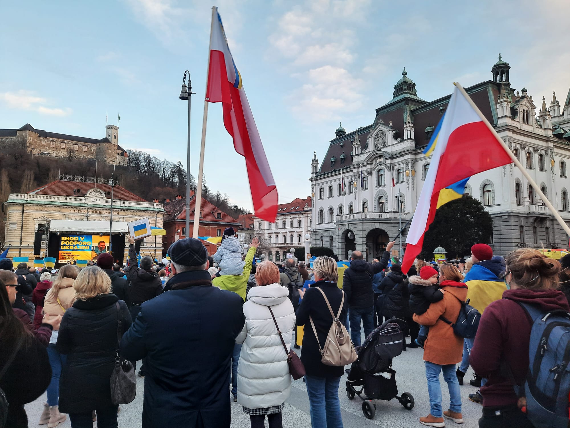 Setkom uczestników wiecu podziękował za pomoc i wsparcie ambasador Ukrainy w Słowenii Mihajlo F. Brodovič podkreślając, że w tych krwawych dniach w Ukrainie rozstrzyga się przyszłość i bezpieczeństwo Europy i świata.