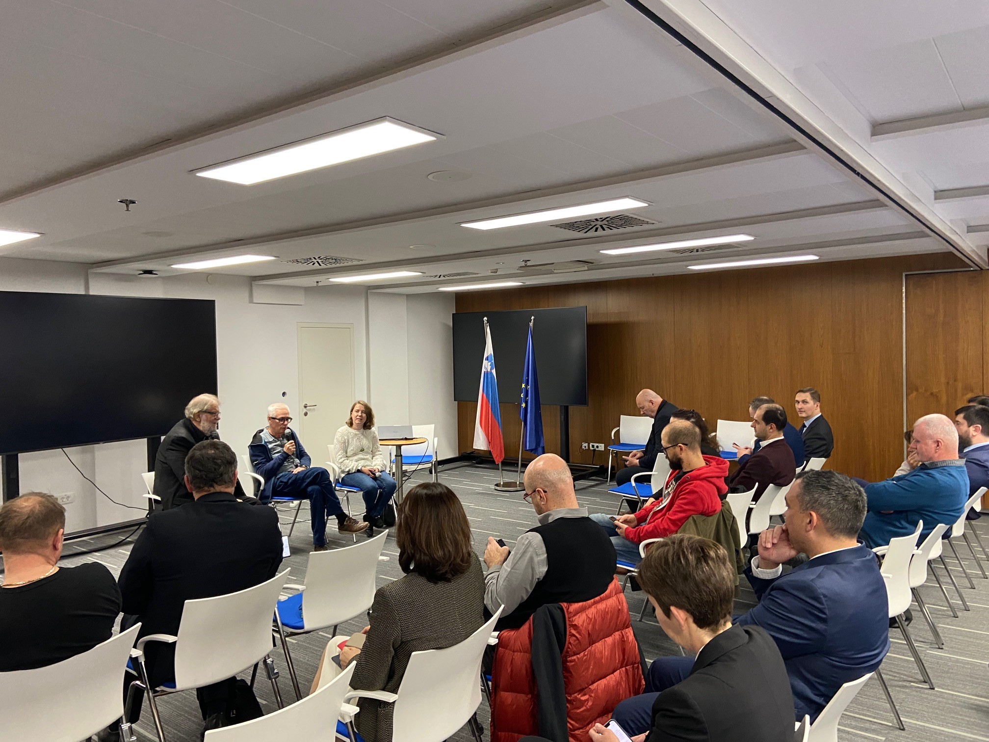 Po projekcjach odbyły się spotkania dla publiczności i mediów z twórcami – reżyserem i producentką oraz debata moderowana przez wybitnego dziennikarza Ervina Hladnika Milharcica, specjalizującego się w problematyce dezinformacji, wojny hybrydowej i kwestii międzynarodowych. Placówka zorganizowała streaming z debaty, a jej nagranie jest dostępne w mediach społecznościowych. Dyskusję z twórcami po drugiej projekcji, z udziałem m.in. ambasador DE, moderowałem ja.