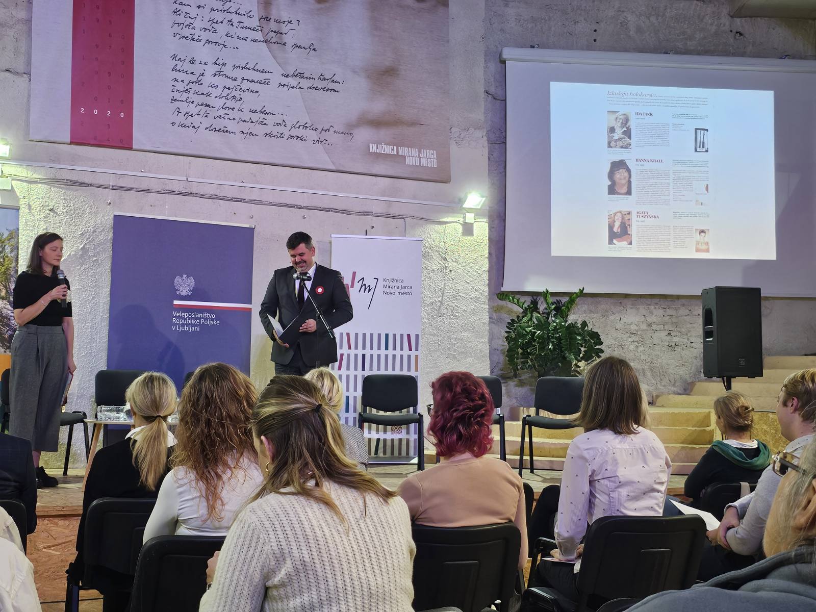 Podczas wieczoru poetyckiego odbyło się – staraniem Ambasady RP w Lublanie – otwarcie kolejnej edycji wystawy Czuła narratorka. Współczesne polskie autorki w przekładach na język słoweński. Wystawa prezentuje twórczość wybitnych polskich powieściopisarek i poetek ostatnich 150 lat oraz podkreśla ogrom pracy translatorskiej, dzięki której ponad 430 dzieł literatury polskiej zostało przełożone na język słoweński, w szczególności w ostatnim 30-leciu. Bardzo ciekawe wprowadzenie do wystawy wygłosił jej współautor prof. Nikolaj Jež, a gospodarze zaprezentowali z tej okazji także kolekcję dzieł literatury polskiej z księgozbioru Biblioteki miejskiej im. Mirana Jarca. Wystawę można oglądać do końca listopada.