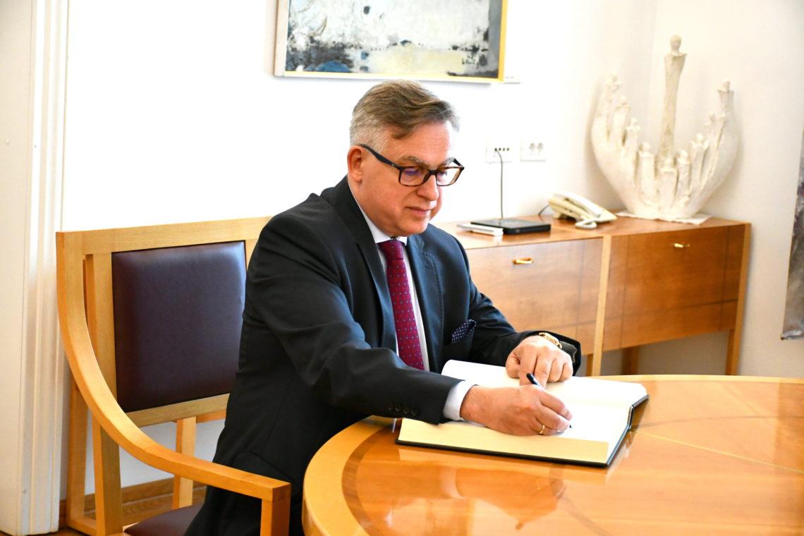W rozmowie kierownictwa instytutu z Ambasadorem i Małżonką Joanna Olendzką wspomniano o projektach w których wzięła udział szkoła, w tym „Trzy chóry - jeden głos« we Wrocławiu, oraz o pierwszej wizycie Papieża Jana Pawła II w Słowenii, który 18 maja 1996 odwiewdził Instytut. Podczas wizyty Ambasador Olendzki dokonał wpisu do Księgi Gości.